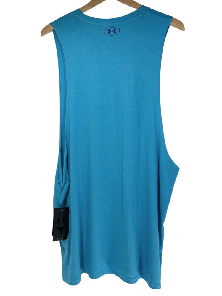 New with tags; hard to find tank! Under armor project rock Brahma bull tank top in two tone blue Mens XXL Bull logo on front with 'Project Rock' underneath Round crew neckline Sleeveless Moisture wicking and lightweight Great for the gym or any athletic/casual occasion Relaxed fit Made with polyester/Cotton Made in Cambodia #underarmour #underarmourprojectrock #tanktop #underarmourtanktop #projectrock #underarmourmens #underarmourshirt #underarmourtank #underarmourprojectrocktanktop