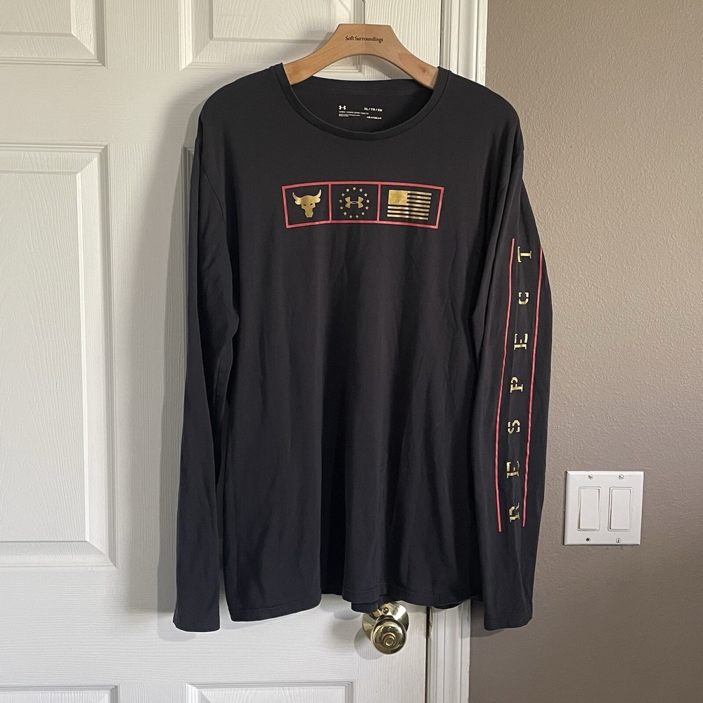 Project Rock T-Shirt Men’s XL Long Sleeve Under Armour Activewear Spellout Black