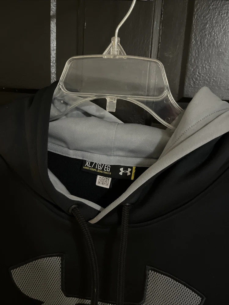 Under Armour Storm Loose Men’s Hoodie Size XL Black / Gray Chest Logo Fleece