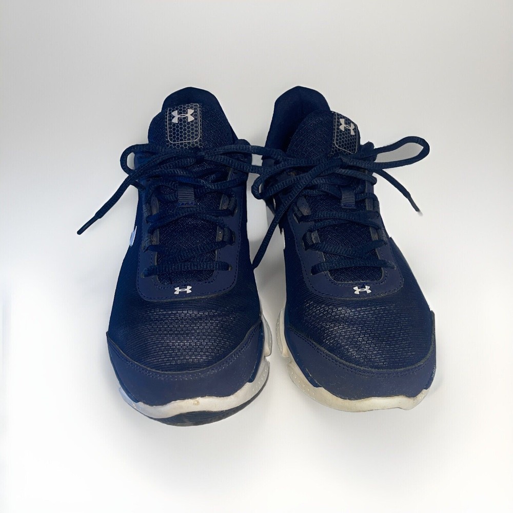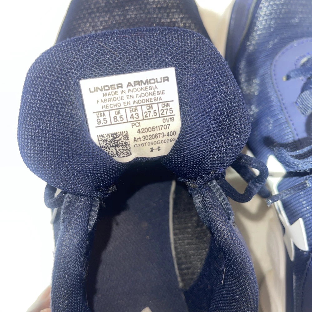 Elevate your running game with these Under Armour UA 9 running shoes. Designed for men in a classic blue and white colorway, these shoes are perfect for any athletic activity. With a US shoe size of 9.5, they are sure to fit comfortably and provide the support you need. Crafted by the popular brand Under Armour, these shoes are made for performance. They are perfect for running, and their design ensures maximum comfort and support for your feet. Whether you're an avid runner or just starting out, these shoes are a great choice. Don't miss the opportunity to elevate your athletic game with these Under Armour UA 9 running shoes.