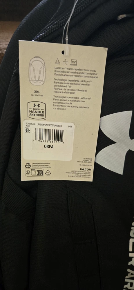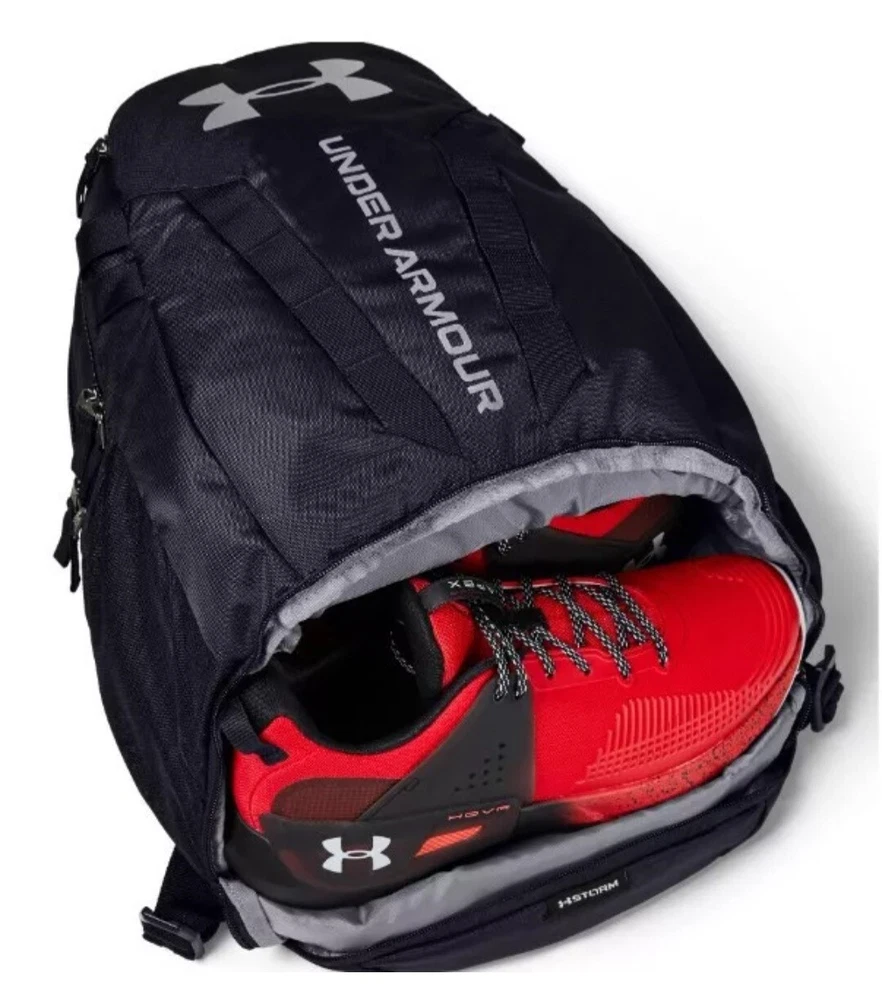 Under Armour UA Hustle 5.0 Backpack in Black is a versatile and stylish backpack designed for both men and women. It features a solid pattern and a storm character design. The backpack has a zip closure and is made of polyester material. With multiple features like inner pockets, inner dividers, laptop sleeve, mobile phone pocket, outer pockets, and bottle pocket, this backpack is perfect for school, sports, and travel. The adjustable strap, lined pockets, and waterproof material make it a durable and comfortable choice for everyday use. Shipping is FAST AND FREE! We ship all items with the utmost care.