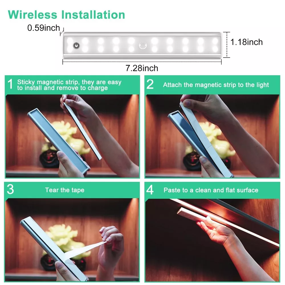 Under Cabinet Lights Wireless, Dimmable 48 LED Closet Lights Rechargeable, Under Counter Lighting with Remote, 15 Color Changing Night Light RGB Bar for Home Shelf Kitchen Pantry Stair, 4 Pack Description: Features: 15 Colors & 4 Dynamic Modes: 4 packs of RGB under cabinet lights wireless are available in 15 different colors (12 RGB colors and 6000K/4500K/3000K), measuring 7.5" L x 1.2" W x 0.6" H, The high brightness can reach 160 lumens. In addition to being able to be used as ambient light and emergency lighting, it can also be used as a mood light. 4 color changing modes - Flash, Strobe, Fade, Smooth. 12 RGB colors flash in a loop, you can use them together in different areas to create a fun mood. Remote Control Cabinet Light: Each set comes with 1 remote control, remote control can easily operate multiple lights within 10-15 feet range. Convenient and time-saving, the remote control has functions such as switching lights, color changing, dimming, timing, etc. In "ON" mode, the remote control can be used, and in "OFF" mode, the power is off. (Warm Tip: The wireless cabinet lights no induction function). USB Rechargeable & Super Easy to Install: Wireless LED closet light built-in 3.7V 1100mAh rechargeable battery, no need to replace battery, save power and money, it takes 2-3 hours to fully charge. After full charged, it can be last 8-9hours in RGB mode (In ON mode: 7-8H). Under cabinet lighting is equipped with sticky magnetic strip, remove the tape and stick it on any clean surface, easy to install, no screws or wires required, is a good choice for temporary and permanent installation. Dimming & Timing: The best choice for bedroom night lights, 10-level of brightness (10%-100%), low brightness to meet the brightness needs of your sleep, high brightness to meet the brightness you need for work, under-counter lights fixture can be set to auto-off after 30, 45 or 60 minutes, if you do not want to set the timer, press the CANCEL key to cancel all timer settings, and you don't have to worry about forgetting to turn off the cabinet lights even if you fall asleep or go out. Widely Use & Guarantee : We provide Lifetime quality assurance, if you have any questions about our products, please feel free to contact us, we will reply you within 24 hours. This rgb led under cabinet lighting is perfect for your cupboard, closet, cabinet, stairs, bedroom, kitchen, pantry, bookcase, bathroom, hallway, stairs, basement, garage, pantry, stair, workshop, storage, shelf, bookcase, display cabinet, wardrobes, etc. Product Details: Brand: LAJOSO Color: 12 RGB Color & 6000K/4500K/3000K Material: Aluminum Style: Remote Control Lights/ 4 Pack Light fixture form: Sconce Brand: LAJOSO Color: 12 RGB Color & 6000K/4500K/3000K Material: Aluminum Style: Remote Control Lights/ 4 Pack Light fixture form: Sconce Room Type: Living room, Cupboard, Closet Light, Bookcase Lighting, Wardrobes, Cabinet, Closet, Stairs, Display Cabinet, Kid's Room, Garage, Workshop, Storage, Shelf, Bookshelf, Stairway, Pantry, Party, Entryway, Kitchen Lights, Bathroom, Basement, Bedroom, Hallway, Product Dimensions: 7.28"L x 1.18"W x 0.59"H Specific Uses For Product: gun safe light, tap light, rechargeable under cabinet lighting, under counter lights for kitchen, home, cabinet lights, stick on lights, kitchen cabinet lights Indoor/Outdoor Usage: Indoor Power Source: Built in 1100 mAh Rechargeable Lithium Battery Installation Type: Magnetic strip Special Feature: Indoor Use Only, Under Counter Lights for Kitchen, Wireless Under Cabinet Lights, Under Cupboard Lighting, LED Strip Lights with Remote, Rechargeable Closet Light, 15 RGB color night light bars, Dimmable, Portable, Color Changing, Portable, Adjustable Color Temperature, Multi Colored Under Cabinet Lights Control Method: Remote Light Source Type: LED Finish Type: Polished Shade Material: Aluminum Number of Light Sources: 48 Voltage: 5 Volts Light Color: 6000K White light, 3000K Warm light, 4500K Natural light, 12 RGB colors Shape: Straight Included Components: 1 x remote control, 1 x user manual, 4 x charging cables, 4 x magnetic strips, 4 x wireless under cabinet lights Warranty Type: Lifetime Lighting Method: Adjustable Brightness Item Weight: 16 ounces Number of Items: 4 Wattage: 2 watts Controller Type: Remote Control Switch Type: remote control/touch control Unit Count: 4.0 Count Water Resistance Level: Not Water Resistant Brightness: 160 Lumen Mounting Type: Double-sided adhesive magnetic strip paste Fixture Type: Removable Assembly Required: No Manufacturer: LAJOSO UPC: 712215624765 Model Name: RD10 4 Pack Part Number: RD10 Item Weight: 1 pounds Country of Origin: China Item model number: RD10 Batteries: 1 Lithium Ion batteries required. (included) Size: Remote Control Lights 4 Pack Finish: Polished Plug Format: ac Special Features: Indoor Use Only, Under Counter Lights for Kitchen, Wireless Under Cabinet Lights, Under Cupboard Lighting, LED Strip Lights with Remote, Rechargeable Closet Light, 15 RGB color night light bars, Dimmable, Portable, Color Changing, Portable, Adjustable Color Temperature, Multi Colored Under Cabinet Lights Batteries Included?: Yes Batteries Required?: Yes Battery Cell Type: Lithium Ion Average Battery Life: 50000 Hours Warranty Description: 1 year. Date First Available: March 9, 2022 On Nov 20, 2024 at 19:55:28 PST, seller added the following information: