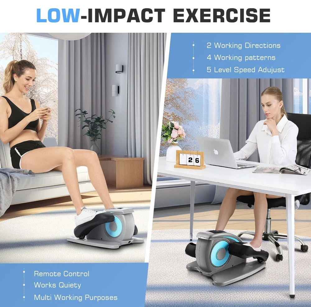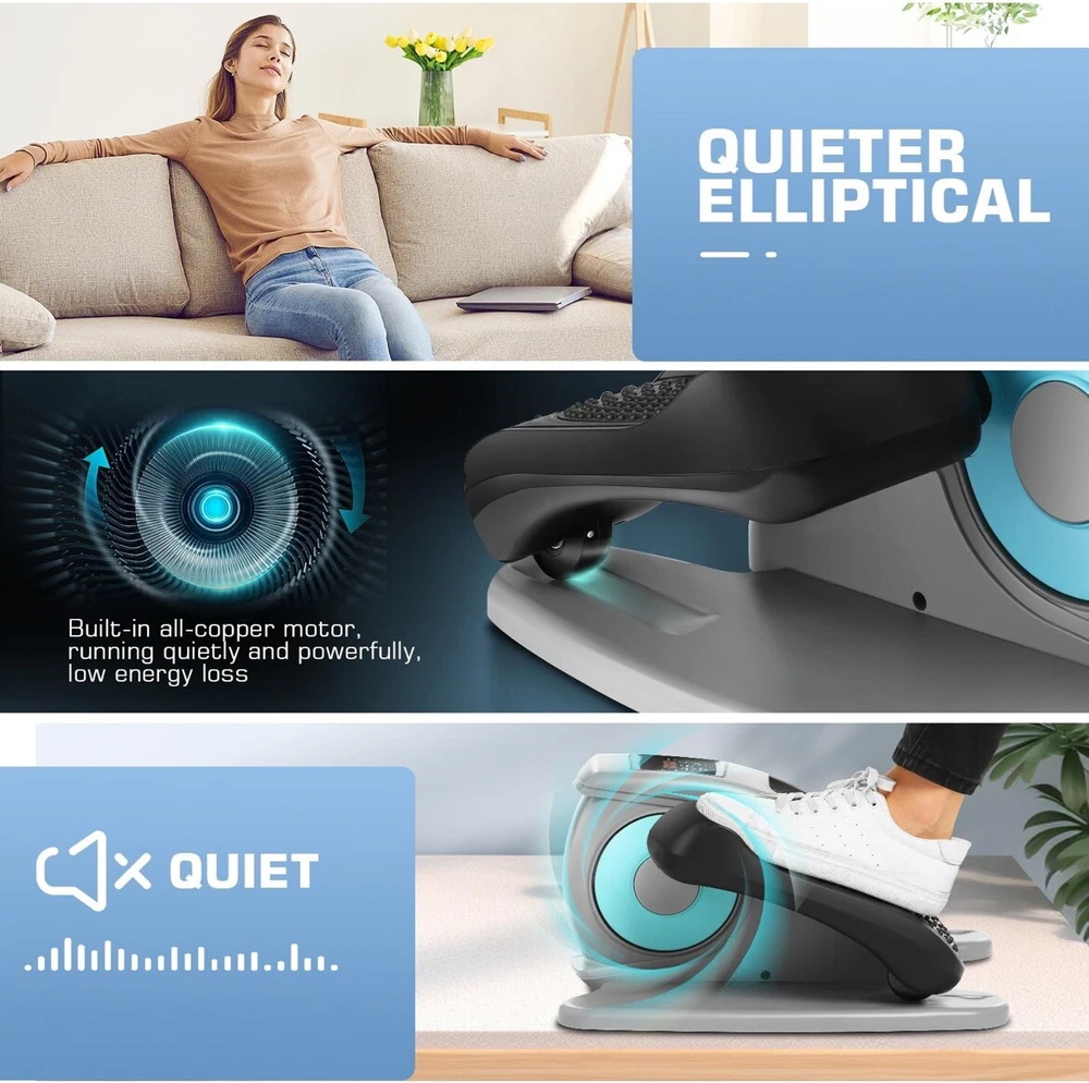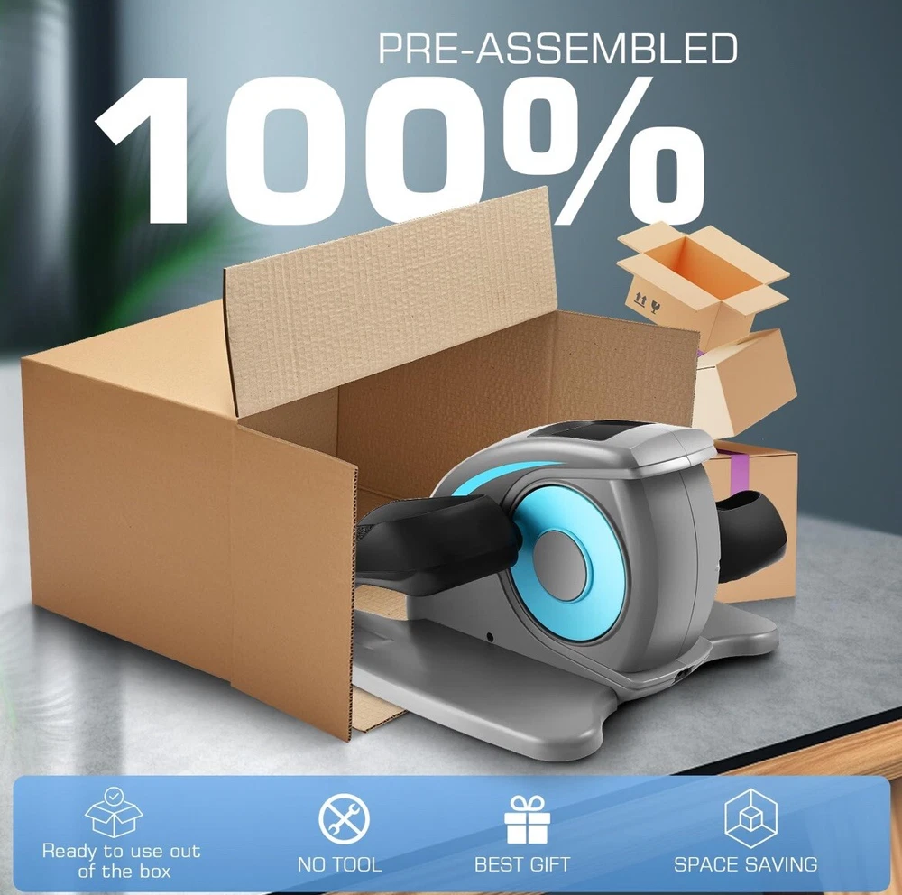 New, Open Box This under desk elliptical machine is a great addition to any home gym or office workout space. With its electric power and seated pedal design, it provides a comfortable and effective workout experience for users of all fitness levels. The ANCHEER brand is known for its high-quality fitness equipment, and this elliptical is no exception. Perfect for gym and training enthusiasts, this machine is ideal for cardio workouts and improving overall fitness. Its compact design makes it easy to store and transport, while the adjustable resistance levels ensure a challenging and effective workout. Whether you're an experienced fitness enthusiast or just starting out, this under desk elliptical machine is a great choice for achieving your fitness goals.