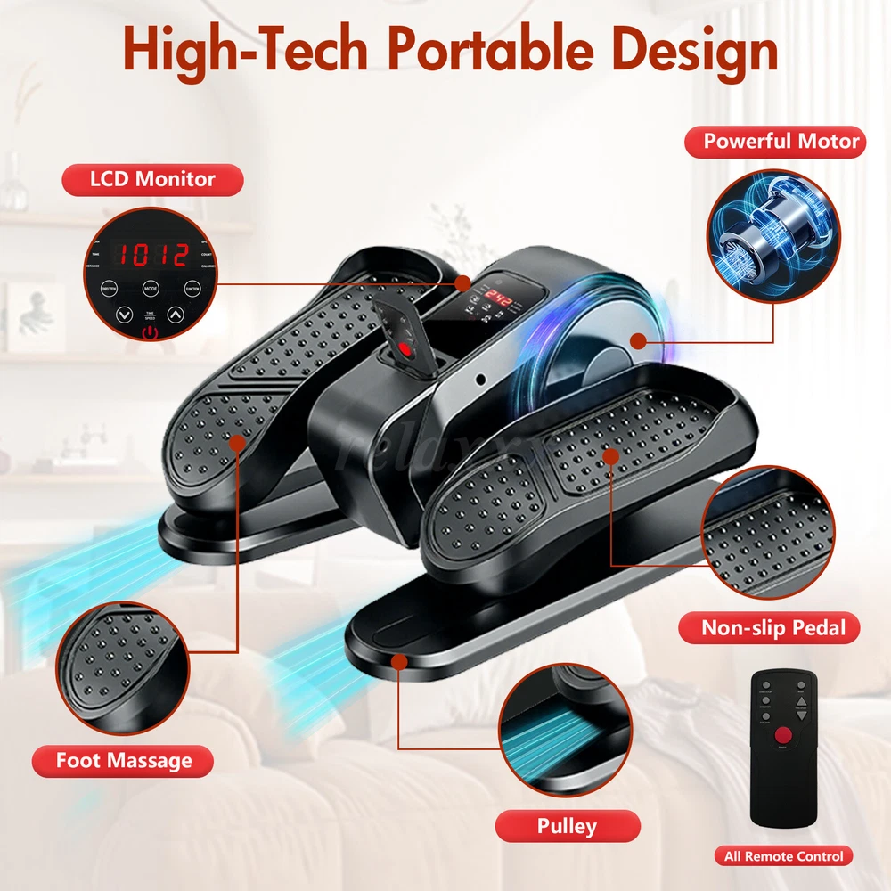 Under Desk Elliptical Bike with Remote - Compact Foot Pedal Exerciser Machine