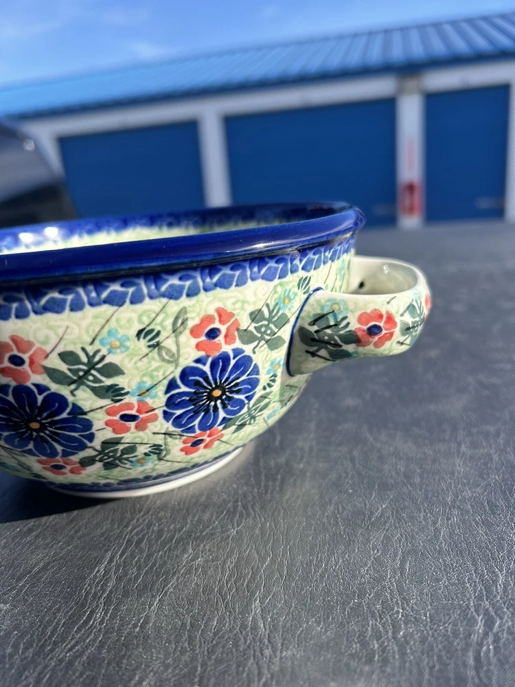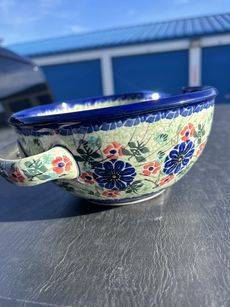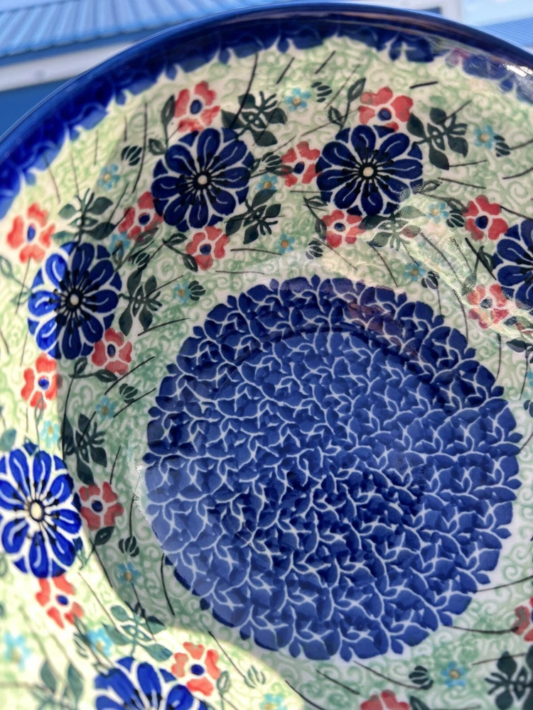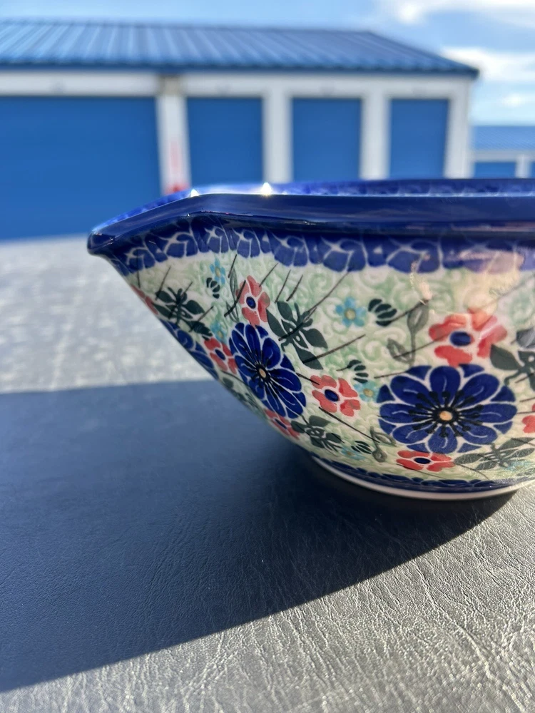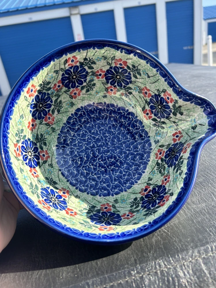 polish pottery unikat boleslawiec Handmade Blue Floral Bowl New