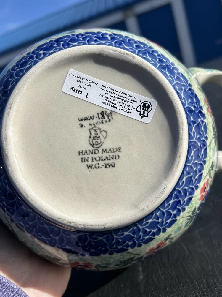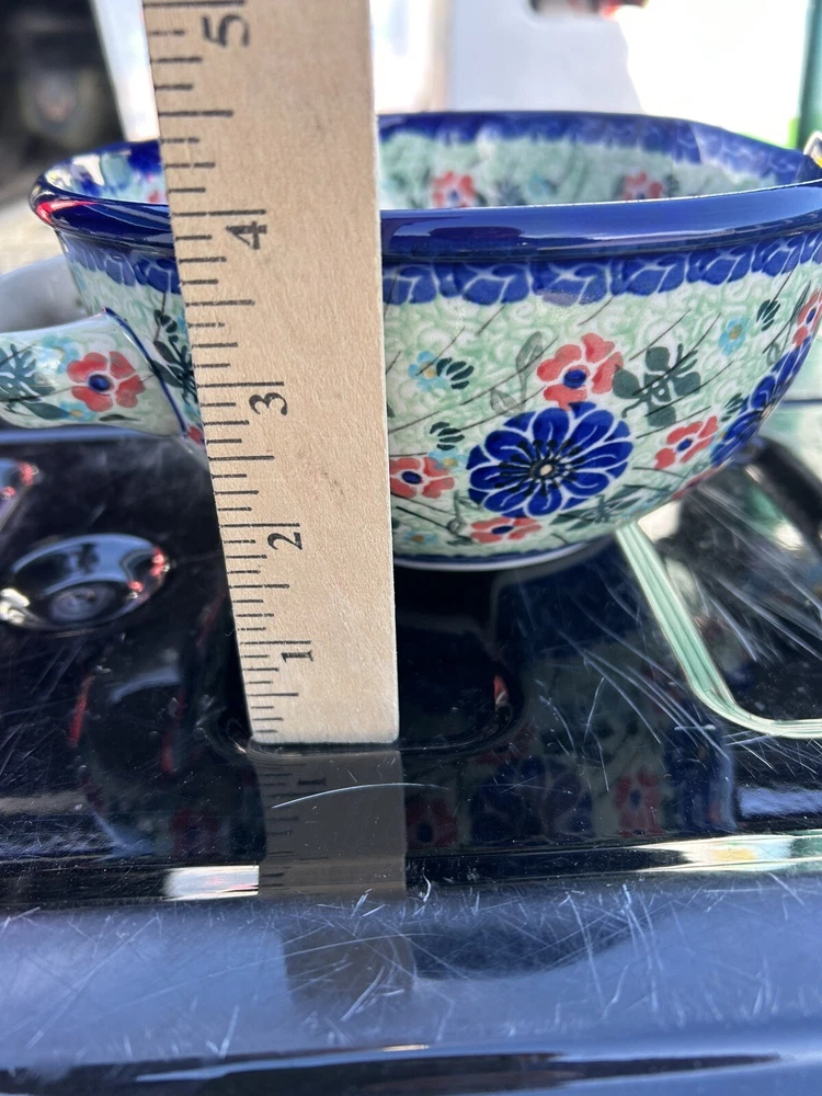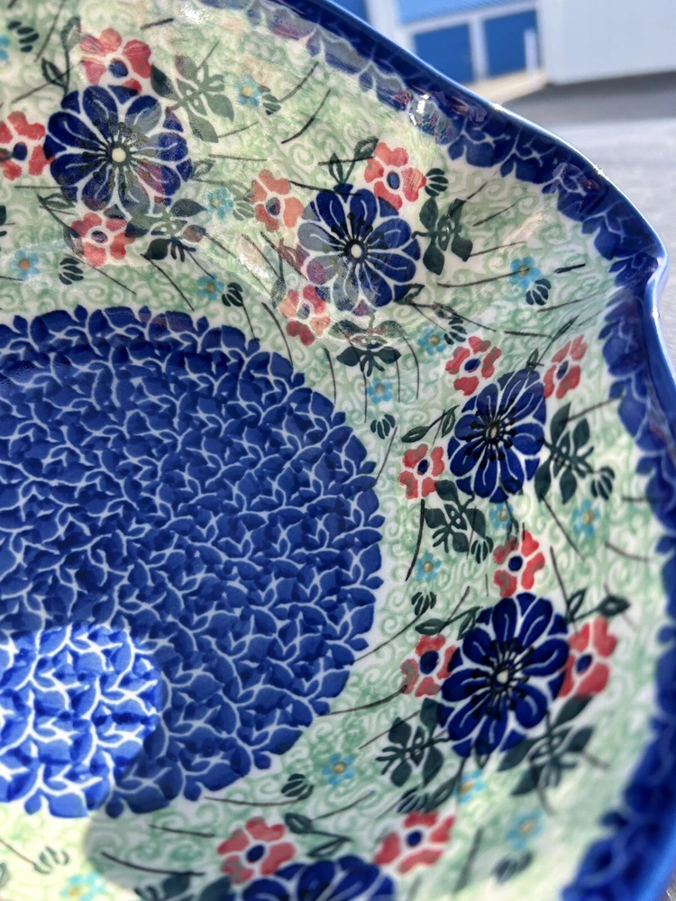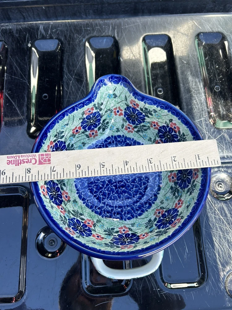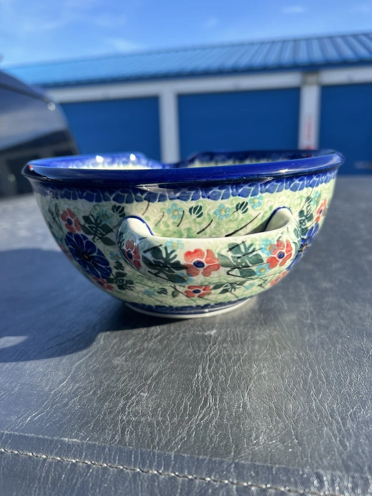 polish pottery unikat boleslawiec Handmade Blue Floral Bowl New