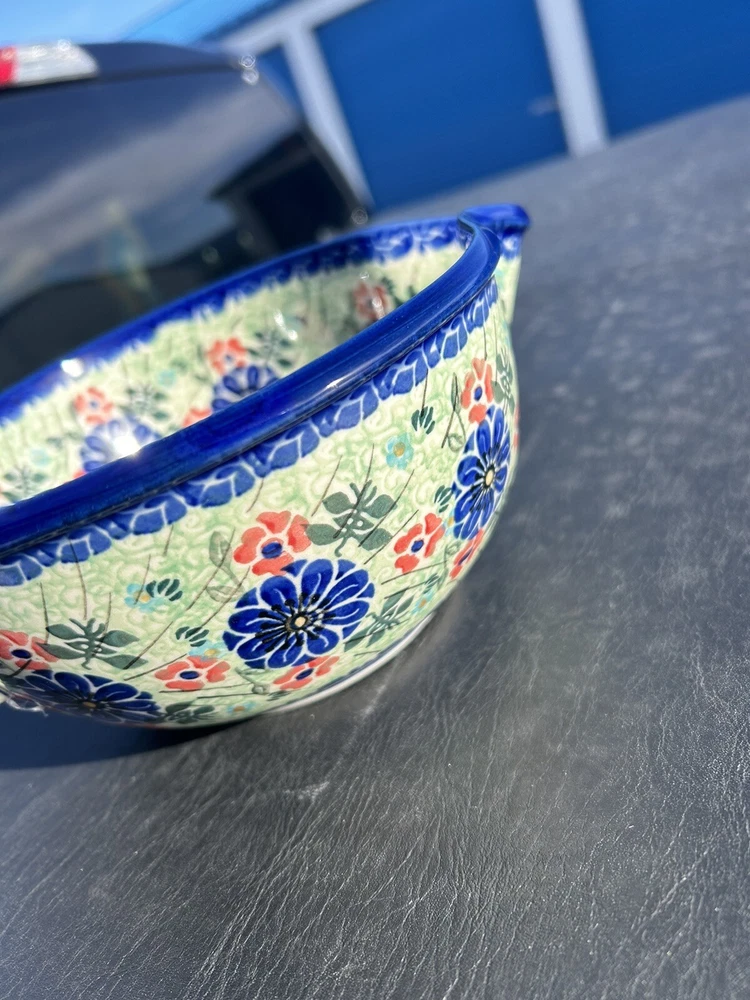 Unikat Polish Handmade Floral Handled Batter Mixing Bowl with Spout