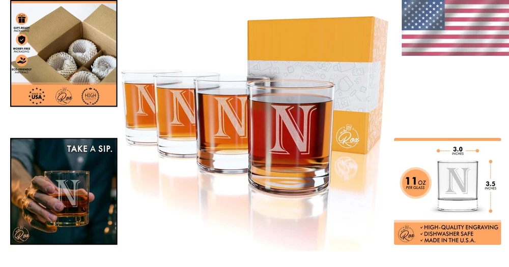 Unique Engraved Whiskey Glass Gift Set - 4PC Personalized for Special Occasions ‹ › ‹ › ‹ › ‹ › ‹ › ‹ › ‹ › ‹ › ‹ › ‹ › ‹ › Unique Engraved Whiskey Glass Gift Set 4PC Personalized for Special Occasions Discover the ultimate drinking experience with our exquisite set of four monogrammed whiskey glasses, ideal for celebrating life's special moments. Whether it’s Father's Day, a birthday, or Christmas, this remarkable whiskey wedge glass set is the perfect gift for the discerning man in your life. Features: Permanent Dishwasher-Safe Engraving: Laser engraved for longevity, ensuring your personalization lasts through countless toasts. High-Quality Glass Construction: Proudly made in the USA with premium materials, offering one of the finest bourbon glasses available. Unbreakable Packaging: Each glass is securely packed to withstand up to 200 lbs of pressure, ensuring they arrive in perfect condition. Artisan-Crafted: Each glass is crafted with attention to detail, reflecting sophistication and quality. Beautiful Gift Box: Comes elegantly packaged, making gifting effortless and impressive. Benefits: Perfect for all occasions - birthdays, anniversaries, or just because! Elevates the whiskey drinking experience with personalized elegance. Robust and durable construction guarantees years of use. Impress your loved one with a gift that combines luxury and utility. Environmentally friendly packaging aligns with sustainable gift-giving practices. Why Choose Our Whiskey Glass Set? Unlike other gifts that may lack personalization or durability, our Unique Engraved Whiskey Glass Gift Set promises an exceptional experience with every sip. Crafted with care and designed to last, these glasses not only serve as a practical accessory but also as a treasured keepsake he will cherish for years. Don’t settle for less; elevate his sipping experience with a gift that embodies elegance and thoughtfulness. Click “BUY NOW” and embark on your journey of GIFT GIVING EXCELLENCE today! Shipping Free & Fast Shipping - We offer free shipping to most of the USA with a normal delivery time of 3-7 days. However, due to the current situation, additional delivery time (up to 3 weeks) may be required for some items. Alternative Carriers - We may use alternative carriers (e.g. USPS, FedEx, UPS, etc.) to ensure your package arrives safely and on time. Due to the use of multiple carriers, we are unable to provide a tracking number automatically. Handling Time - Orders are processed and shipped within 1-2 business days of receiving cleared payment. Shipping Restrictions - Shipping to Alaska, Hawaii, Puerto Rico, Guam, and other US territories may incur shipping charges or delivery restrictions. Please contact us before ordering, or your order can be refunded/cancelled. State Restrictions - There may be restrictions based on your state of purchase. For example, certain items may not be shipped to California due to state regulations. Contact for Tracking Updates - If you require tracking updates or have any concerns about the delivery of your order, please feel free to contact us, and we will be happy to assist you. Return 30-Day Hassle-Free Returns - We want you to be completely satisfied with your purchase. If you are not, you can return the item within 30 days of receiving it for a full refund or exchange. Easy Return Process - To start a return, simply contact us and we will provide you with a prepaid return shipping label and detailed instructions. Restocking Fee - There are no restocking fees for returns. However, the buyer is responsible for return shipping costs if the return is not due to a seller's error. Refund Processing Time - Refunds will be processed within 5 business days of receiving the returned item in its original condition. Payment We accept all major credit cards, PayPal, and Apple Pay for your convenience. Your payment information is secure and encrypted to ensure a safe and seamless transaction. Please complete your payment within 3 days of purchase to avoid any delays in shipping. Feedback Your feedback is extremely important to us. We strive to provide the best products and customer service possible. If you are satisfied with your purchase, please take a moment to leave us a positive review. If you have any concerns or issues with your order, please contact us before leaving negative feedback. We are committed to resolving any problems and ensuring your satisfaction. Contact Us If you have any questions or concerns, please feel free to reach out to our customer support team. You can contact us through the eBay messaging system. We are available Monday to Friday, 9:00 am to 5:00 pm EST, and we will do our best to respond to your inquiry within 24 hours. Buy it now and enjoy a pleasant shopping experience! UPC: Not Set Unit Quantity: 4 Material: Glass,Recyclable,Lead Free,BPA Free Set Includes: Whiskey Glass,Holder,Bag Features: Dishwasher Safe,Engraved Theme: Monogram Occasion: Anniversary,Christmas,Father's Day,Birthday,Any Occasion Character: Not Set Department: Adults Design: Cylinder Type: Whisky Glass Brand: Unbranded Color: Clear Glassware Type: Whiskey Glass Service For: 4 Character Family: Not Set Capacity: 11 oz MPN: Not Set Country/Region of Manufacture: Not Set Shape: Cylinder Style: Modern Pattern: Solid Item Height: Not Set Number of Items in Set: Four-Piece Item Width: Not Set Manufacturer Warranty: Not Set Care Instructions: Dishwasher Safe Item Weight: 3.19 lb Model: Not Set Unit Type: lb Personalize: Not Set