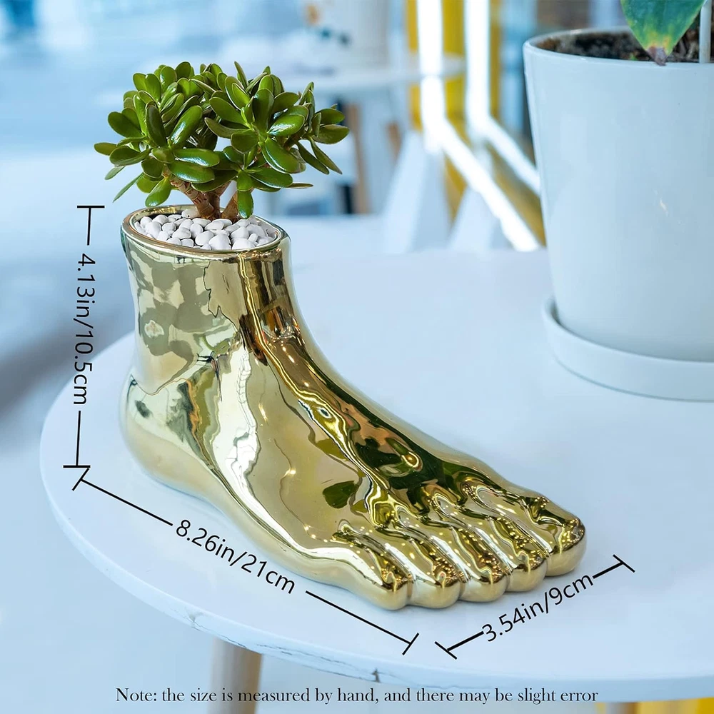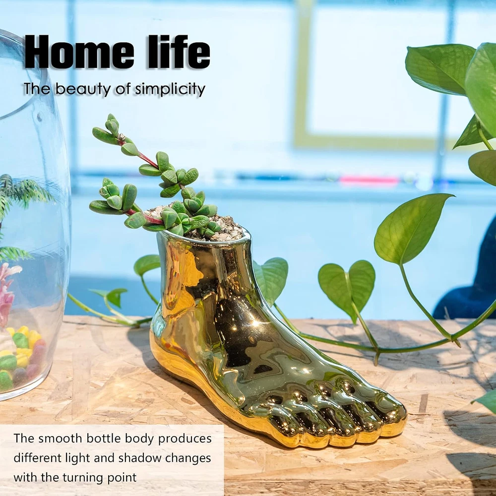 Store New Arrivals Add to Favorite View Feedback Contact Unique Flower Vase Statue Home Decor Modern Style Gold Room Decor Accents for Indoor and Outdoor Statue Planter Pots Gold Decor Accents Sculpture Home Decor(Foot Shaped) Description Planter Form Plant Pot Finish Type Coated Style 当代 Number of Levels 1 Number of Pieces 1 Indoor/Outdoor Usage Indoor Mounting Type Window Mount Color Foot Shaped Pot Pattern Solid Product Dimensions 3.54"D x 8.26"W x 4.13"H Material 陶瓷 Shape Foot Shaped Plant or Animal Product Type suculenta, hierbas, flores Item Weight 10.6 ounces Theme Floral Special Feature 排水孔 Included Components Holder 【DIMENSIONS】The feet shaped flower pot size is approximately 8.26" length x 3.54" width x 4.13" height(NOTE:Plants pictured not included.) 【MULTI USE】Grow mini cute plant in the foot planter,such as herbs,succulents or cacti.Besides,it can also be used as a pen holder or a decoration for your house. 【NICE HOME DECOR】This foot shaped flower pot is not only a planter but also a handicraft.Geometric decorations make your space more stylish.Ideal for windowsill,office table,kitchen,bathroom,and bedroom decoration;Perfect Gift for Wedding,Birthday,Christmas,etc. 【ADVACED MATERIALS】Handcrafted elegant design foot shape Ceramic planters,The plant pot is lightweight and durable.Every flower pot has been carefully checked and can be used with confidence Money back guaranteed with no question asked if not satisfied with the product Product Description Premium Quality Crafted from high-quality Ceramic , this vase is of excellent quality and can withstand daily use. It features a wide mouth, allowing you to display your favorite flowers, plants or decorative items, while its robust base ensures its stability. Great Gift Idea Chic flower vase ornament is a perfect decoration for your home or office desk sketch vase.Put a small bouquet of flowers for Mother's Day or her birthday; Uniquely designed to fit any taste and any personality; Any mother, grandma, sister, or daughter will appreciate this ornate flower vase. Graceful Unique Look The flawlessly smooth feet shaped flower pot Vase but also a handicraft - Modern Classic Home Decor.Perfect for minimalist decor, this vase is versatile and stylish, making it a great addition to any room. Goods Information Description: Decorative Vase is the perfect addition to your home decor. This golden foot shaped vase will complement a wide variety of settings with its unique design, creating a simple yet elegant aesthetic. - Package Include 1 × Ceramic Vase Features - Color: Gold-Material:Ceramic modern flower vase - Size:Size: 8.26" length x 3.54" width x 4.13" height - Ideal for adding a touch of elegance to any space in your home. - Ceramic products are hand-made and may have some small black spots or bubbles, it is normal. ABOUT US We offer the best prices around on high quality products. Our E-store includes media such as books, movies, music and games while offering electronics, toys, sporting apparel, clothing, tools, general home, garden items and more. SHIPPING We are always working hard to ensure your package arrives as soon as possible. Please understand that some factors like weather, high postal traffic, and the performance of shipping companies are outside of our control. We offer free shipping to the lower 48 states and ship within 2 business days of payment, usually sooner. We do not accept P.O. Boxes. Please provide a physical address. For shipping outside of the continental USA, we only use eBay's Global Shipping Program.The item is shipped to KY and then sent to the rest of the world. International customers are responsible for all duties and taxes. Continue to check out in order to calculate costs for shipping the item to your country. Messages regarding eBay's Global Shipping Program MUST be directed at eBay EXCLUSIVELY. RETURNS We offer a 30-Day Return Policy on items which you are not completely satisfied with. You have the option for a full-refund or an exchange of the item. No returns are available on items shipped outside of the USA. PAYMENT We accept PayPal. CONTACT US This page content is yet to come Please ad us to your favorite seller and visit again later Thank You CUSTOMER SATISFACTION We try our very best to make sure every customer is completely satisfied. If there's a problem, message us! We're happy to help. WE ACCEPT Copyright © 2021 AutoDS. | All Rights Reserved