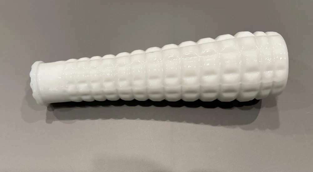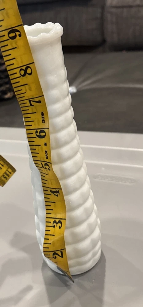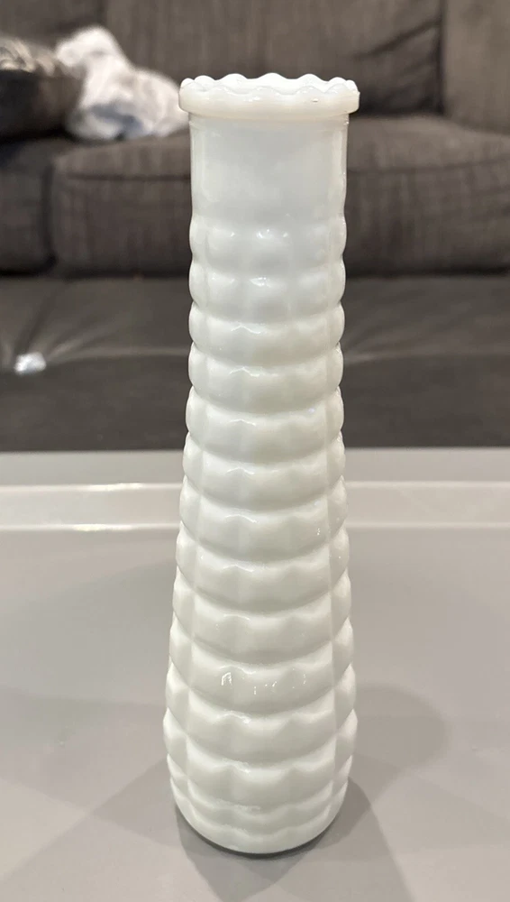 This beautiful milk glass vase is a must-have for any glassware collector or interior decorator. The vase is made of high-quality glass and has a unique milk glass production style that adds a touch of elegance to any room. It is perfect for displaying fresh flowers or as a standalone decorative piece.