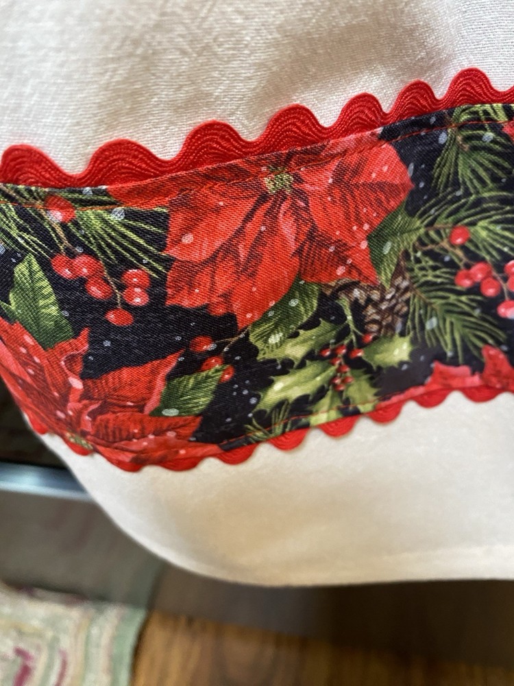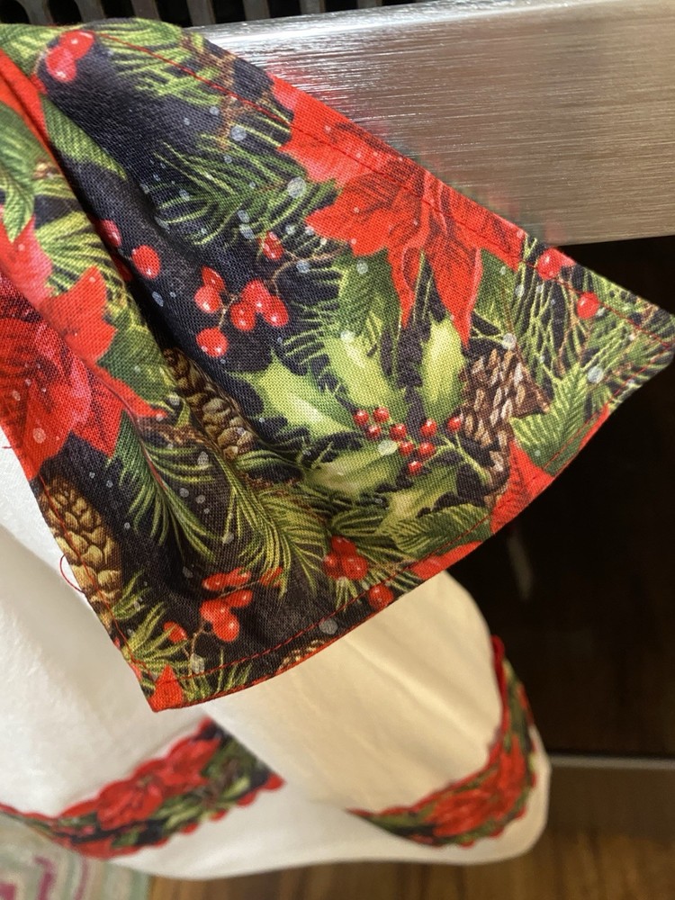 This unique Christmas-themed tea towel features a tie design, making it a stylish addition to your kitchen decor. Made from 100% cotton and machine washable, this multicolor hand towel is perfect for adding a festive touch to your holiday celebrations. The flower sack design adds a charming and whimsical element to this handmade tea towel, which is sure to bring a smile to your face as you use it in your kitchen. Feel free to reach out to me with any questions you may have. Scroll on down and you will see other items that I have made to sale.  As always, thank you for looking. Happy Shopping! Thank you! Sandra