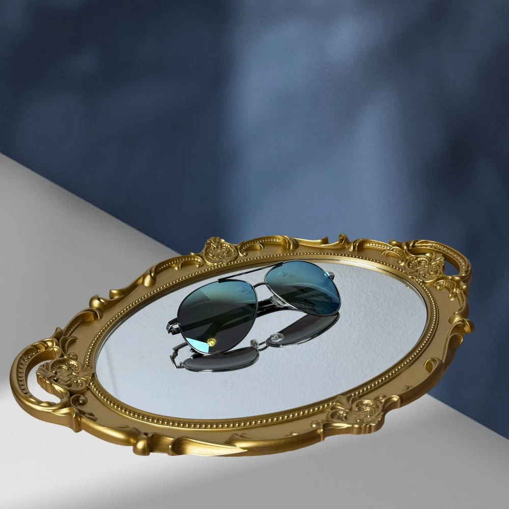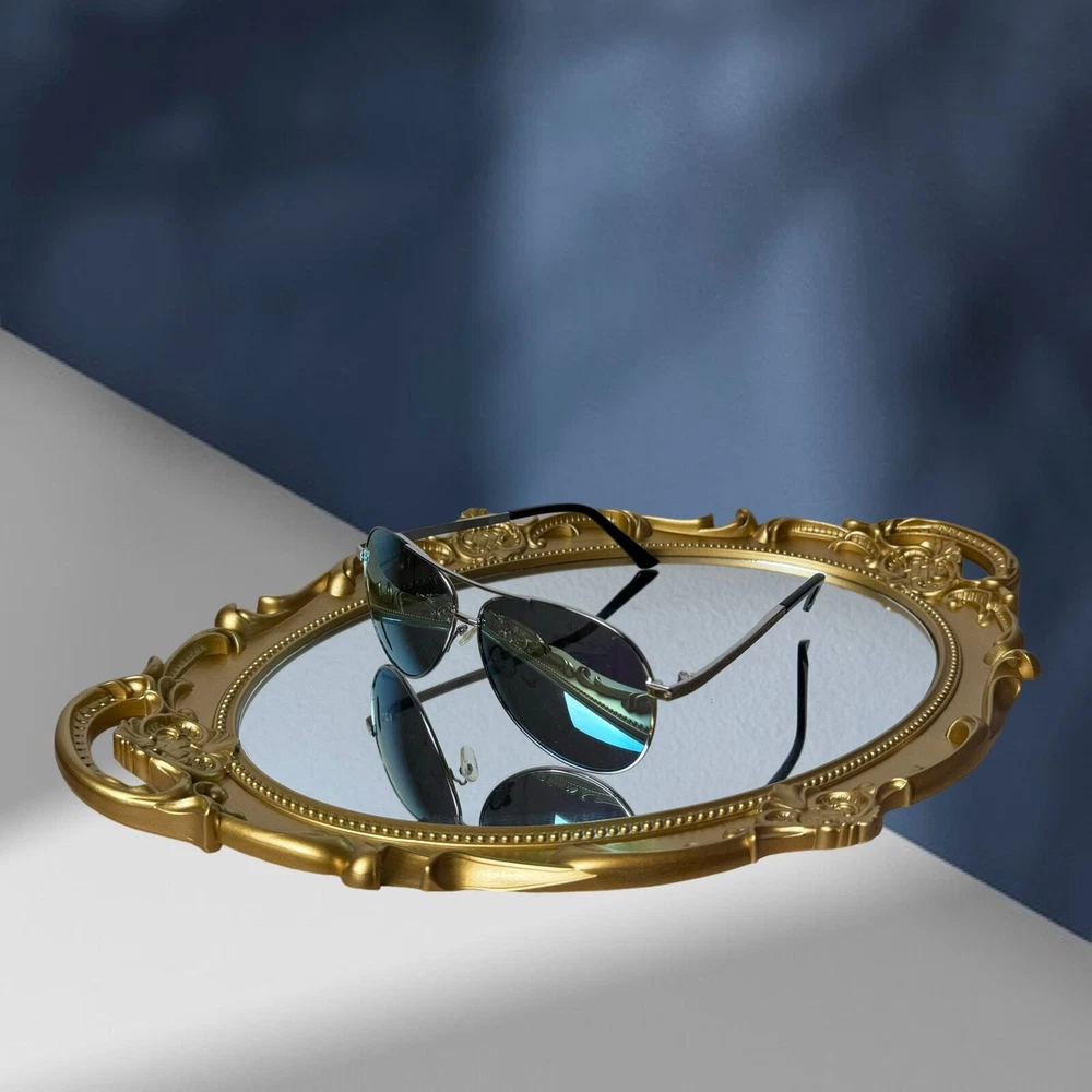 Pre-loved Unisex Classic Aviator Sunglasses *great condition* Color: Mirrored Green Glasses and Silver Metalware