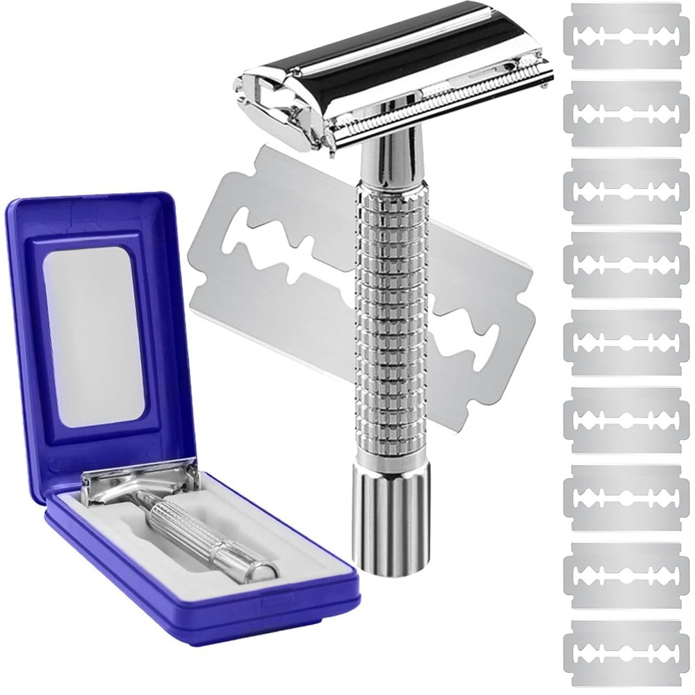 Double Edge Safety Razor for Unisex, 10 Platinum Coated stainless steel Product Details Package Dimensions : 4.33 x 2.56 x 1.26 inches; 3.53 ounces Manufacturer : Double Edge Safety Razo Country of Origin : China Brand: EIen Number of Blades: 1 Unit Count: 1 Count Special Feature: Double Edge Skin Type: Sensitive This blade is very sharp, sharper than a regular blade. If it is the first time to shave, it is essential to use foaming soap because the face has bumpy muscles. The blade quickly shaves off the protruding parts of the irregular muscles, which can cause bleeding. However, the use of foam helps to create a smooth surface. These blades are designed primarily for coarse facial hair, and the second use will not be as sharp as the first time. You can simply moisten your beard with water. Stainless steel blades. Includes 10 High-Quality Platinum-coated stainless steel double edged razor blades to shape with accuracy Double edged safety razor. A single blade razor designed for edging sideburns and strong beard lines to help you achieve your perfect look Double Edge Safety Razor for Unisex, Safety Razo, Women Men's Razor with a Delicate Box, Fits All Double Edge Razor holder PACKAGE CONTENT – 1 safety razor (single blade razor), 10 platinum-coated Swedish steel mild blades, 1 luxury case. This is the ideal gift or present for birthdays, anniversaries, Christmas, Valentines, Father’s or Mother’s day. THE SMOOTHEST SHAVE for both men & women – Significantly reducing ingrown hair, skin irritations and razor burn often experienced with plastic cartridge razors, helping you finally achieve the smoothest, cleanest and closest shave. ECO FRIENDLY – Unlike costly disposable cartridge razors, when you purchase this product, the entire razor and all its refill blades contains zero plastic, thus 100% reusable and recyclable. The pinnacle of over a century's worth of innovation and expertise, and the only range that bears the name of our company's founder: This safety razor for men is an iconic design inspired by our heritage, for edging with ultimate precision, classic function and style. A single Platinum coated double edged safety razor blade shapes with precise accuracy, ideal for edging sideburns and strong beard lines to help you achieve your perfect look. Our closed comb head design, perfected a century ago, allows for great control, while the high-quality chrome plated handle ensures long-lasting durability. Includes 10 Platinum coated stainless steel double edged razor blades for a precision finish and lasting durability. How to insert a new blade: first, hold the razor upside down, unscrew the handle and lift off the blade guard and old blade. Second, place a new blade on to the cap using the central screw and two location posts to keep the blade straight. Lastly, replace the guard and reattach the handle by turning clockwise until fully tightened.