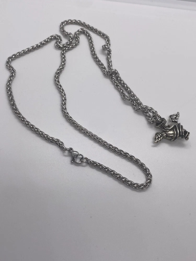 The necklace is beautiful i love it very much, it doesnt feel cheap its great quality. it even came packaged with s lollipop which was very sweet! So thank you very much! It was also packaged very well and came as described.