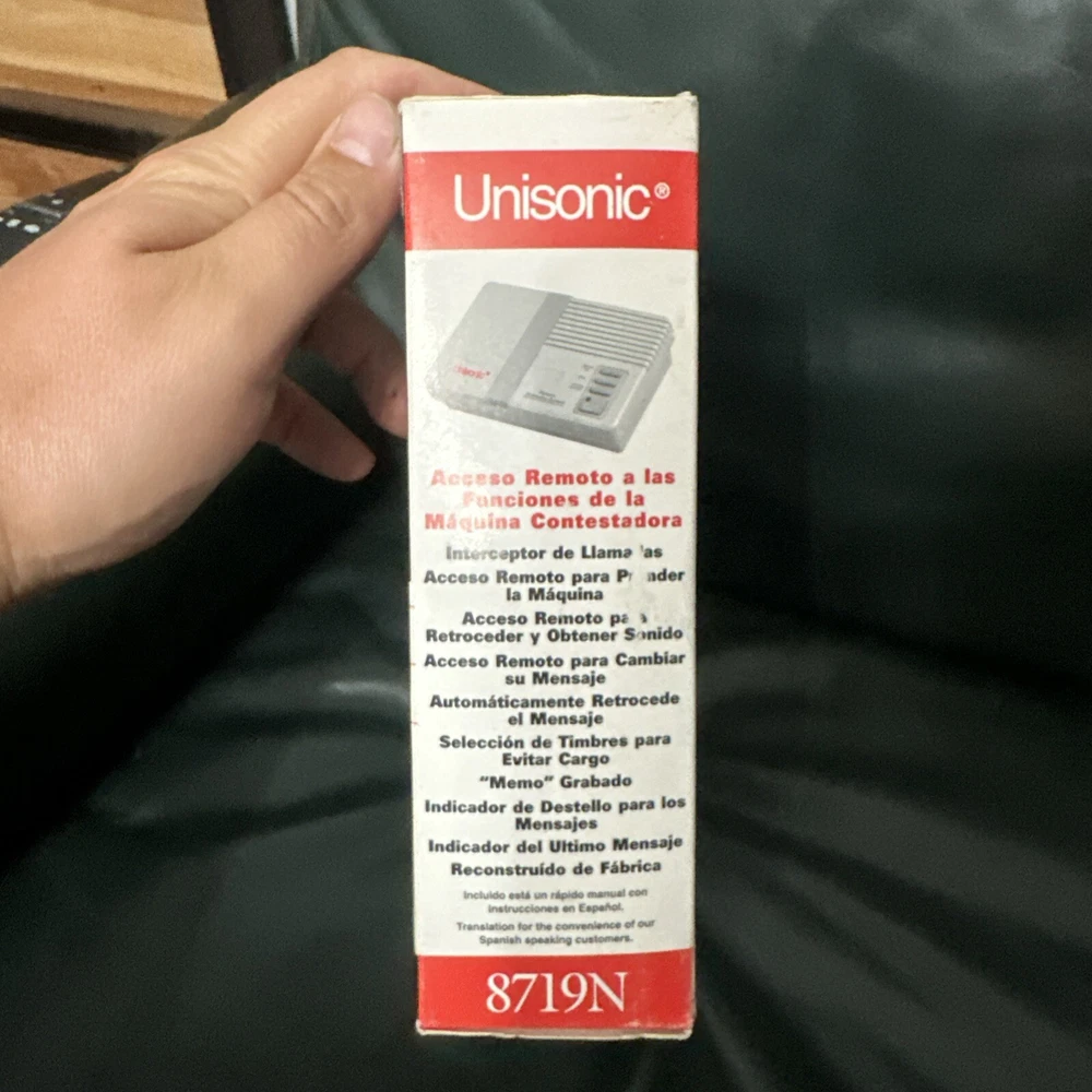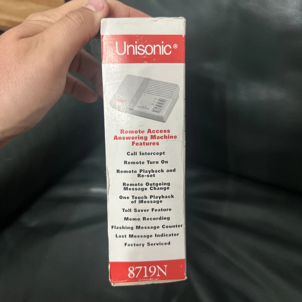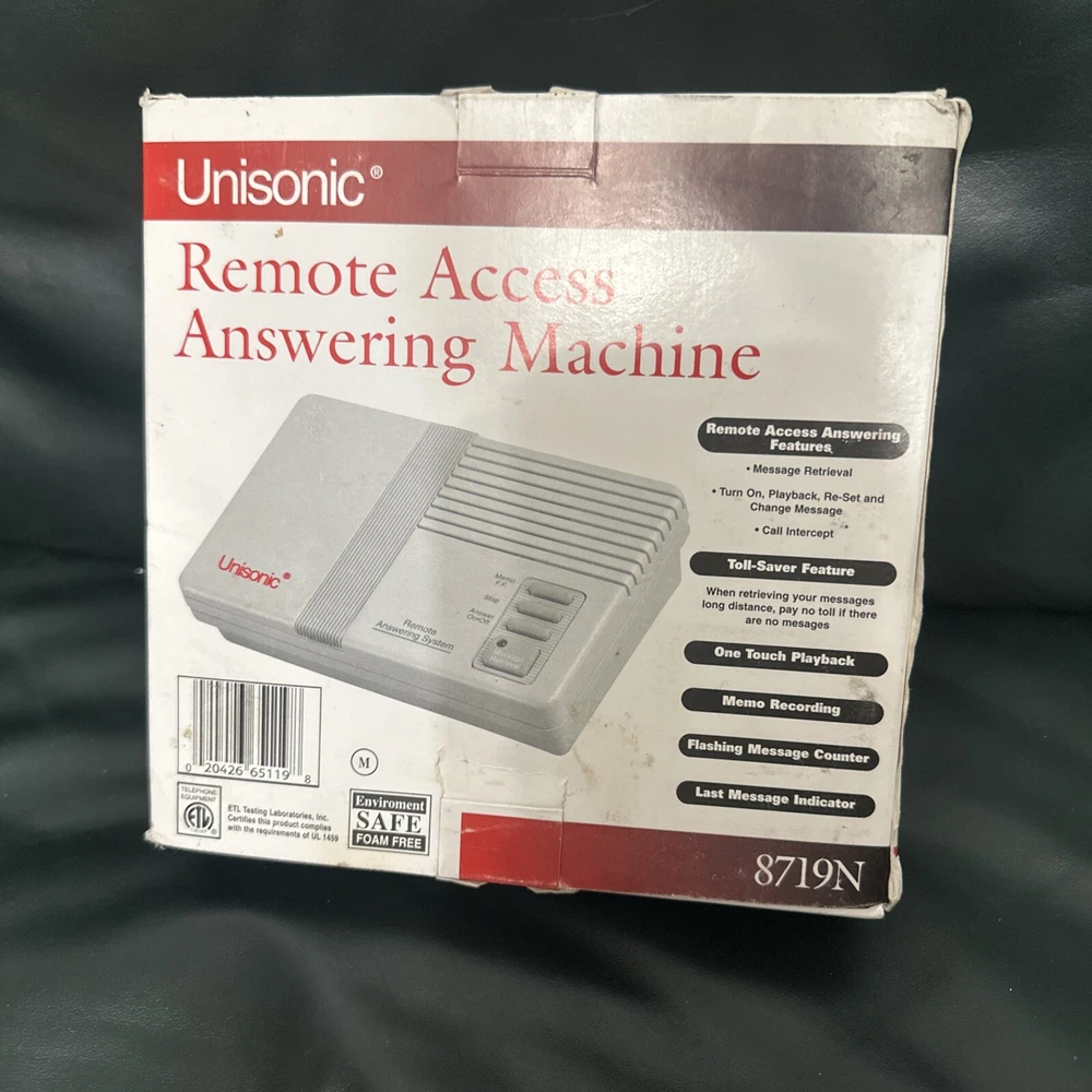 The Unisonic 8719N is a Full Feature Remote Answer Machine System in white. It features Call Intercept and is manufactured in Malaysia. This telephone model offers advanced answering machine capabilities for home or office use.