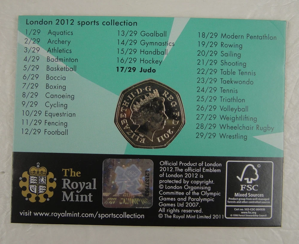 NOW YOU ARE BIDDING ON United Kingdom 50 Pence Coin London 2012 Sports Collection- Judo The pictures are for reference only. All the pictures are taken ourselves, it may has a chromatic aberration by camera or display. We have more than one, we relist the same eBay listing and use the same/old pictures after we sold one item. So you may not receive the same item as in the pictures, however the item you’ll receive will be in the similar condition as in the pictures. We insure the safety of every item. We will ship all items via CHINA POST within 1 business day after the payment is received. We just ship the item to your shipping address on Online Payment. It will take about 15-25 days to arrive for USA and worldwide. We promise that the buyer doesn’t bear any risk on the way, if the package is damaged, lost or stolen on the delivery, we make the full refund or resend same items. We do not want to give you a bad buying experience even when the shipping is out of our control. Buyers who purchased bulk items or multi-items from my store within 3 days, and need to be arranged as combined shipping with charge discounted, please make a combined payment. do NOT send individual payments for each item, I will automatic offer a shipping discount. I accept Online Payment only. Import duties, taxes and charges are not included in the item price or shipping charges, these charges are the buyer’s responsibility. THANK YOU FOR VIEWING AND HAPPY BIDDING! GOD BLESS !!!