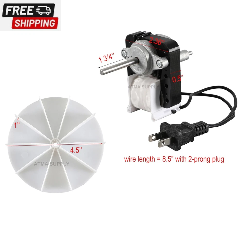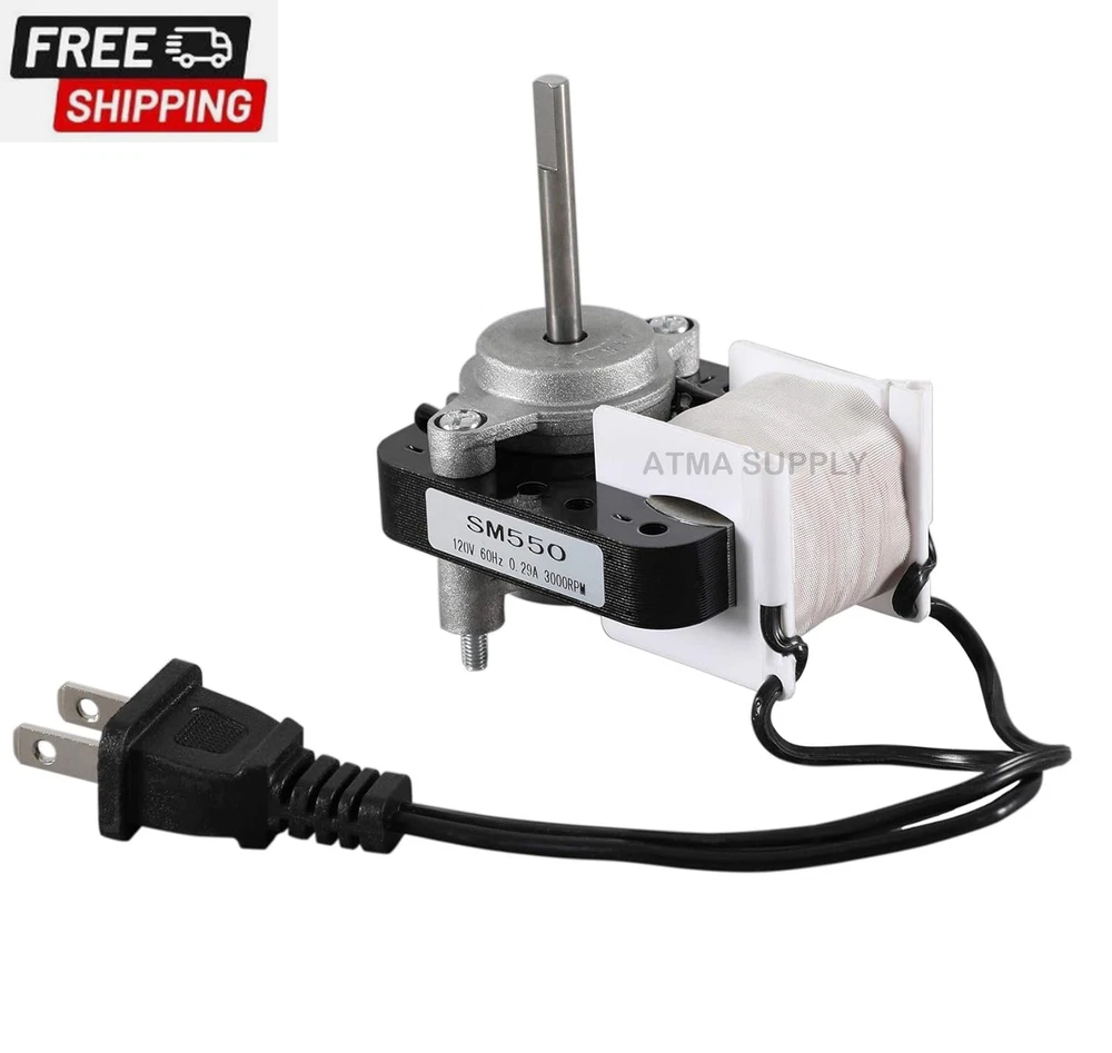 Fast Shipping On All Items 30 Days Money Guarantee Customer Support Excellent Service 100% Satisfaction Satisfaction Guaranteed Universal Bathroom Vent Fan Motor Replacement Electric Motors Kit SM550 Compatible with Nutone Broan 50 CFM120V Replace C01575 65100 EM550 EM750 Specification Power Connector Type 2-Pin Cooling Method Forced air, Fan-based Noise Level 14 dB Wattage 34 watts Material Copper Country of Origin China Compatible Devices Desktop Package Dimensions 5.16 x 4.88 x 3.84 inches; 1.2 Pounds Voltage 120 Volts Maximum Rotational Speed 3000 RPM Air Flow Capacity 5E+1 Cubic Feet Per Minute 4.88 inches x 5.16 inches x 3.84 inches. Weight: 1.2 lb Item Description SM550 Universal Bathroom Exhaust Fan Motor: 120 volts, 60Hz, 50CFM, 0.29A , 3000 Rpm. Replace Nutone Broan 65100 Bathroom Vent Fan Motor and Blower Wheel Kit contains: 1 x motor, 1 x fan = 4.5 (flat/paddle style) Shaft approx. 3/16" x 1 3/4", wire length = 8.5" with 2-prong plug , Mounting studs 1 7/8" on center,5/8 Coil stack This motor is a replacement for motors Nutone Broan, Uppco, Ventorola E498-1, Bay Motors, Sears 569, Dayton and many other units. This motor is reversible CCW & CW Rotation . Replaces 65100, VFM100, C65878,33-100,82423K,EM550,K111,EM750,784A,f784a,676d/2676f,763rln and more Product Description Bathroom Vent Fan Motor 0.29A, 3000ROM 120 Volts ,60Hz Shaft approx. 3/16" x 1 3/4" Wire length : 8.5" with 2-prong plug Mounting studs 1 7/8" on center Motor is reversible CCW & CW rotation Why do you need this product? Reduce bathroom odors Improve indoor air quality When will you need this product? Fan blade broken Unusual noise when start up Old motor rusty and not running properly Easy to install. Remove two long bolts or screws, put them through the hole in the original mounting bracket, then through the holes on the motor bracket, and then tighten. Or you can also find the installation method by searching the online video for the part number SM550. PREMIUM QUALITY The replacement part is made from durable high quality material and well-tested by the manufacturer-Meets OEM Standards. REPLACES PART NO. 65100, VFM100, C65878,33-100, 82423K, EM550,K111,EM750,784A,f784a,676d/2676f, 763rln, 695,688-j, 678D, 2676F, 681-a, 681f-a, ca90, 663L, 784A and more. UNIVERSAL COMPATIBLITY Designed to replace for motors in Broan, Nutone, Uppco, Ventorola E498-1, Bay Motors, Sears 569 and others. PACKAGE INCLUDES 1 x Bathroom motor 1 x Bathroom fan ATMA SUPPLY ATMA SUPPLY focuses on providing high quality parts over 10 years, we have many different parts for freezer,dishwasher, washer, dryers, air conditioners and other appliances.We work to provide you with quality parts that are affordable. We are confident that you will be satisfied with your purchase! About us We offer the best prices around on high quality products. Our E-store includes media such as books, movies, music and games while offering electronics, toys, sporting apparel, clothing, tools, general home, garden items and more. Shipping We are always working hard to ensure your package arrives as soon as possible. Please understand that some factors like weather, high postal traffic, and the performance of shipping companies are outside of our control. We offer free shipping to the lower 48 states and ship within 2-3 business days of payment, usually sooner. We do not accept P.O. Boxes. Please provide a physical address. For shipping outside of the continental USA, we only use eBay's Global Shipping Program.The item is shipped to KY and then sent to the rest of the world. International customers are responsible for all duties and taxes. Continue to check out to calculate costs for shipping the item to your country. Messages regarding eBay's Global Shipping Program MUST be directed at eBay EXCLUSIVELY. Returns We offer a 30-Day Return Policy on items in which you are not completely satisfied with. You have the option of a full-refund or an exchange of the item. No returns are available on items shipped outside of the USA Satisfaction We try over very best to make sure every customer is completely satisfied. If there's a problem, message us! We're happy to help. Payment Options Shop With Confidence