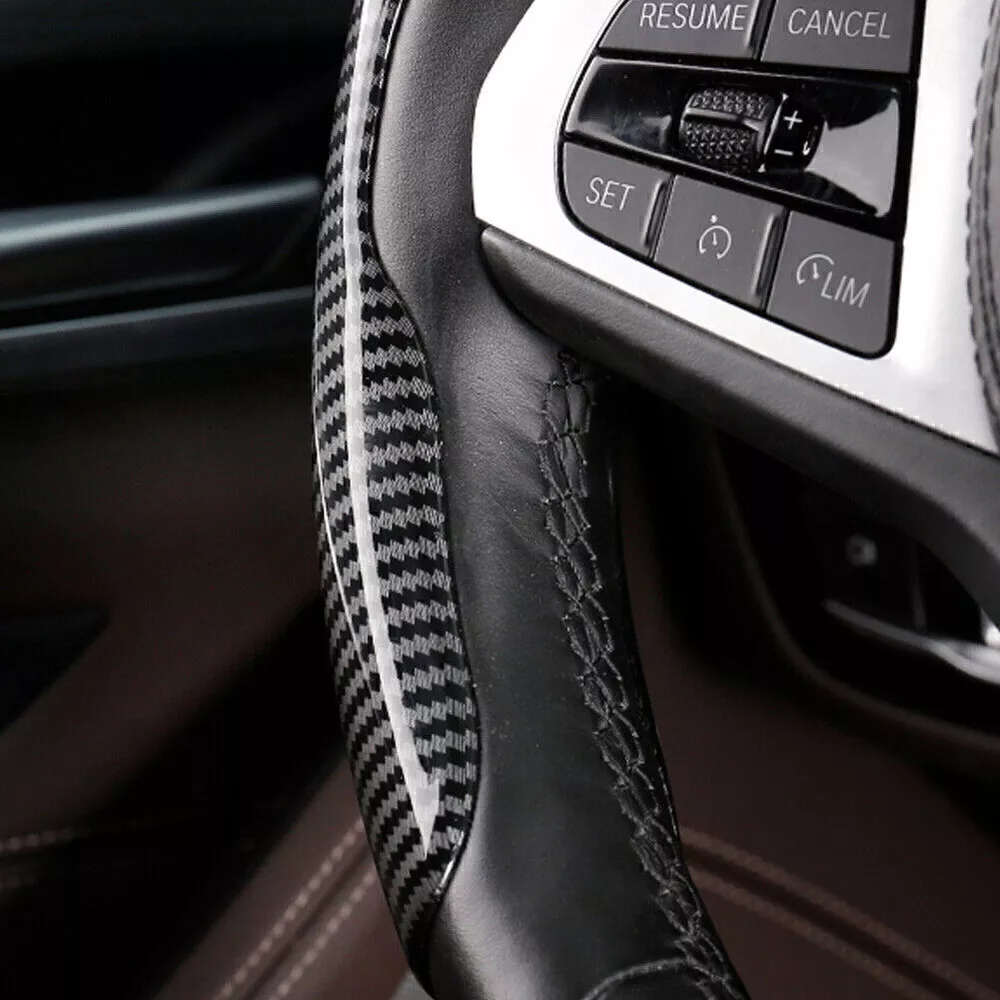 Universal Car Non-Slip Steering Wheel Booster Cover Carbon Fiber Accessories Description: Enhance your driving experience with our Universal Car Non-Slip Steering Wheel Booster Covers. Made from high-quality carbon fiber, these covers provide a sleek and stylish look while ensuring a firm grip on the steering wheel. Perfect for all seasons, they help reduce driving fatigue and improve control, especially during long drives or in challeng ing conditions. Features: • Premium Material: Crafted from durable carbon fiber for a modern and sophisticated appearance. • Non-Slip Design: Ensures a secure grip, enhancing safety and comfort while driving. • Universal Fit: Suitable for most steering wheels. • Easy Installation: Quick and hassle-free setup without any tools required. • All-Season Use: Keeps cool in summer and provides a comfortable touch in winter. Specifications: • Material: Carbon Fiber • Color: Black