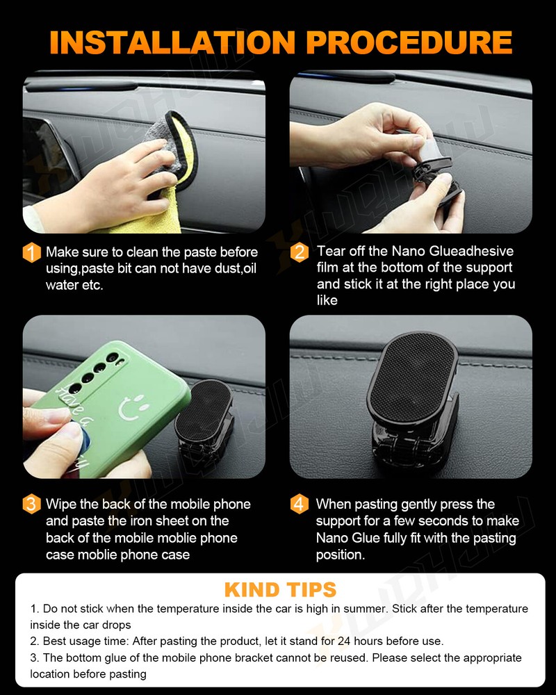 Suitable for furniture, office, car. Cell phone models universal, nano strong adhesive, tear off without leaving a mark, the slope can also be affixed, do not hurt the car. Can be used on dashboard, instrument panel, desktop and other smooth surfaces. Universal cell phone holder compatible with all smart phones. Instruction Manual 1.Make sure to clean the paste before using, paste bit can not have dust, oil water etc. 2.Wipe the back of the mobile phone and pastethe iron sheet on the back of the mobile phone or the back of the phone case. 3.Tear off the adhesive film at the bottom of the support and stick it at the right place you like. 4.When pasting gently press the support for a few seconds to make glue fully fit with the pasting position. XWQHJW Q&A RETURNS SHIPPING PAYMENT CONTACT US XWQHJW Q&A Q1: Will this bulb fit my vehicle? A1: We can match almost any vehicle to one of our bulb sizes. eBay only lets us include some vehicle fitments per listing, but if your vehicle does not show up on the compatibility table at the top of our listings, welcome you to contact us for free consulation before purchasing a product. Q2: My item has not arrived, what's taking so long? A2: Sometimes items take longer than expected, especially if it’s going far or to rural area. Check with your post office to see if your item has been held up. Sometimes Royal Mail will not update a tracking number until it has arrived at its destination. If your item still don't arrive after a few days, let us know so we can double check for you and help solve it asap. Q3: My bulbs won't fit, help! A3: Special bulb holder may be required. See if you can take the holder from the stock bulb. If not, let us know. The bulb size may be wrong, double check the item you received with the item you ordered. Do you have an aftermarket lighting housing? These may not be perfectly fitted for aftermarket bulbs and will require some manual modifications. Q4: Neither side lighting up? Both sides flicker, hyper flash, or work inconsistantly. A4:Check the light fuses, and then check the ballast plugs to insure correct installation. If this doesn't work, there may be a voltage problem with the vehicle. You probably just need a relay or capacitor. Even though some bulbs are builtin resistors, they may still need a decoder. Q5:Why after installing the bulb, there have the flicker/error message/radio interference? A5: Some car's system is sensitive to the led bulb, we can send the decoder/resistor to help you solve the problem. RETURNS (1) We offer 60 days return policy. Please contact us within 60 days t from the date you receive your order if you have any issues with the product or want return .Refund will be send after we got your resend package. (2) All returned items should be in the original packaging , return tracking information should be provided. (3) Buyer is responsible for return shipping cost due to the problem not caused by item quality itself. (4) Items to be returned must be in resalable condition, for example: Item do not fit your vehicle perfect The item arrived be broken Parcel Lost If you have problems with the above issue, please Contact Us immediately. SHIPPING Domestic(U.S.) Shipping All items will be shipped out within 1 or 2 business days with cleared payment. Please included your phone number to the payment note for prompt and secure shipment. Tracking numbers for all orders are added to eBay once they have been dispatched; please login to eBay to find the tracking information for your order. Most items are shipped USPS first class mail, delivery usually takes just 4-6 business days. Additionally, we do not ship on weekends. International Shipping Puerto Rico: As we use standard USPS, PR is considered a US territory for mailing purposes, and can be selected as such at checkout. Shipping will be domestic U.S. rates. For Canada & Mexico or other countries We use the eBay's Global Shipping Program. Once you’ve paid for your item, we'll send it to the global shipping center within 1 or 2 business days. From there, it's sent to you. Lost Shipments For non-signature required shipments: If the tracking information that corresponds to a shipment confirms that the product was delivered to the intended address, the customer assumes all responsibilities and liabilities for the receipt of the shipment.The Customer is the one who provided XWQHJW with the ship to information, and in doing so absolves XWQHJW of any liabilities for missing or stolen deliveries. Customs Fees for International Shipping Shipments are marked with the value of your purchase price. International customers are responsible for any tariffs or customs fees that may be associated with their shipment. Please check your country's laws and regulations before your purchase. PAYMENT Variety of payment methods are accepted, such as credit, debit, gift cards, Apply pay, Google Pay, Paypal and Paypal Credit. We only ship to the confirmed shipping address given with the payment. If you want to ship to other address, please change your shipping address before you make payment. To avoid initiating an unpaid item claim, please pay within 7 days. CONTACT US If you have ANY questions with shipping, product or service, please Contact Us first before leaving feedback/write a review or filing a return case. We will solve the problem! We always put our customers first and your satisfaction is guaranteed. Our office hours are Monday - Friday 6:00PM - 3:00AM PST, but we will response you once we get your message. There will be some delay on respons if you send message or E-Mail on Saturday、Sundy. On Nov 21, 2024 at 20:29:23 PST, seller added the following information: