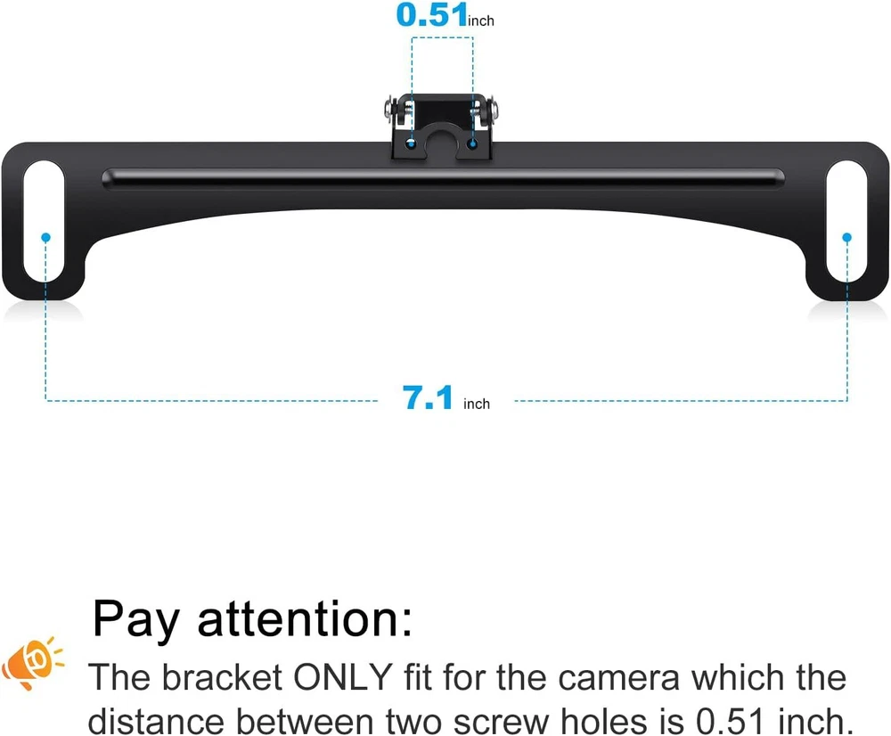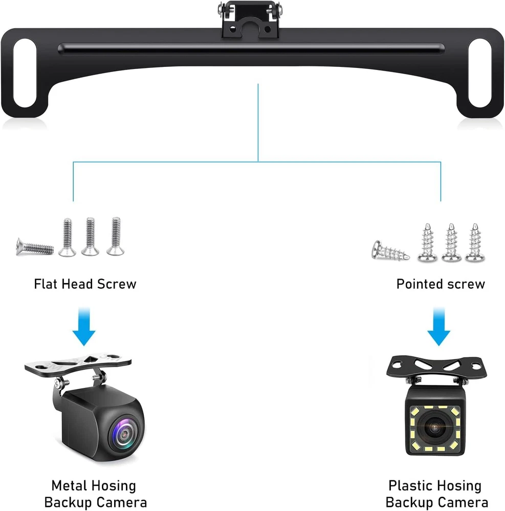 Universal Car Rear View Backup Camera License Plate Bracket, Only Black Product Details Product Dimensions: 7.68 x 1.8 x 0.7 inches Item Weight: 1.76 ounces Special features: No Screen Display technology: LCD Other display features: Wireless Color: Black Manufacturer: GLK Brand: GLK Screen Size: 7.1 Inches Product Dimensions: 7.68"L x 1.8"W x 0.7"H Compatible Devices: Cameras Display Technology: LCD Installation Type: Surface Mount Video Capture Resolution: 720p Voltage: 12 Volts Optical Sensor Technology: CMOS Real Angle of View: 170 Degrees The Backup Camera Bracket fit for backup camera, dash camera. This bracket can be replacement for the small bracket, install more easier. The Rear View Camera bracket fit for both plastic and metal housing of backup camera, Flat head screws are used in metal shells, and pointed screws are used in plastic shells. Please pay attention to the direction when installing the backup camera , or the image will flip upside. You can check the image before installation. The Rear Camera bracket will come with 1*license plate bracket with holder, 8pcs screws (4pcs for plastic shell camera, 4pcs for metal shell camera).