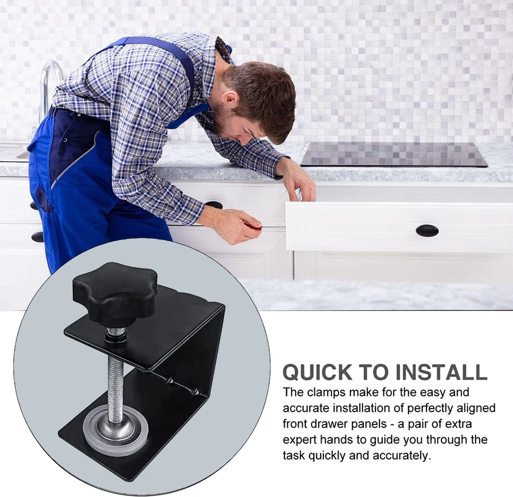 Specification: *Adjustable jaw. *Anti-slip design. *Material: -piece cold-pressed steel plate. *Size: 3.15*2.56*1.97inch. *Color: Black. Package Contents: 1/2/3Pcs C Installation Clamps. 【High quality material】Our C-clamp is made of aluminum alloy, durable, strong, light and easy to carry, with electrostatic spraying process. Smooth and beautiful appearance, no burr. 【Easy to adjust】Adjustment by screw knob, easy to operate, multiple bracket mounting holes, installation angle free adjustment. 【Anti-slip Design】The aluminum C-clamp uses anti-slip friction rubber pads, and the updated rubber pads on the clamp part can prevent damage to the cabinet surface during installation. 【Easy and fast cabinet installation】Easy tightening and alignment of cabinet door frame and flexible drilling guide for pre-drilling and installing screws will make the assembly smooth and easy. Professional cabinet clamps can complete the installation in minutes. 【Applicable to woodworking industry】It can be easily installed on desks, carts, benches, workbenches, posts, clamps on headrests, etc.