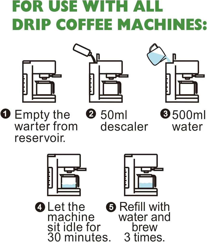 Coffee Machine Descaler, Universal Descaling Solution For Coffee Makers & Espresso Machines,Coffee Maker Cleaner And Descaler, Limescale Remover Product Details Package Dimensions : 5.35 x 3.66 x 1.89 inches; 11.36 ounces Item model number : descaler120 Manufacturer : junjing cleaner Brand: LULUGLITTER Unit Count: 1.0 Ounce Number of Items: 1 Contains Liquid Contents: Yes Manufacturer: junjing cleaner POWERFUL DESCALING SOLUTION: Our coffee descaler and cleaner is a multipurpose solution meant to remove mineral and limescale deposits on a wide variety of machines. It deeply penetrates oil and can work as a decalcifier for other home appliances SAFE For Use: Our coffee maker cleaner and descaler is made from natural concentrated citric acid that is odorless, powerful, and safe for your coffee maker and your family Extend Machine Life – Regular use of our coffee descaler significantly extends the lifespan of your machine. By using our solution, you can keep your coffee maker functioning like new for years Universal Descaling Solution -- Compatible with Keurig, Nespresso, Breville, Delonghi, Jura, Ninja, OXO, Gaggia, and Philips, is eco-friendly and specially formulated to clean your machine safely 2 BOTTLES, 4 USES - This package comes with 2 bottles of descaling solution, for a total of 4 uses. It can be used in any model machines.
