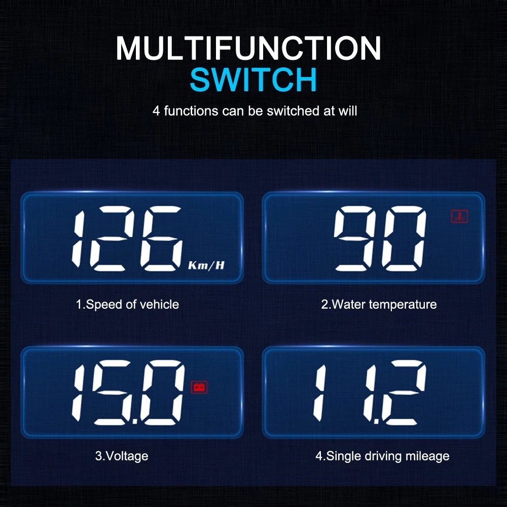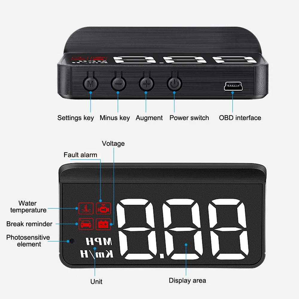 Features: 1. [High Quality Material] It is made of high quality ABS plastic, which is heat-resistant, hard, high elasticity and toughness, which improves the electrical performance, abrasion resistance, and has good waterproof performance. Good material can effectively increase the service life of the product. We are confident in the quality of our products. 2. [Easy to Install] Snap-on plug, solid and stable connection, even on rugged roads, it will not disconnect or power off. Plug and play, install and start working. Installation can be done in a very short time and requires almost no mechanical knowledge. 3. [Multi-function] It can display speed, water temperature, voltage, one-way driving mileage. With alarm function, overspeed alarm, water temperature alarm, voltage alarm, fatigue driving reminder, malfunction alarm.HUD has adaptive light sensor function, clear backlight during the day, soft and free at night. 4. [Application] New high quality car flat screen display with various functions for cars with OBD2 interface and protocol. HD display effect, clear and no ghosting, main unit + reflective film, backlight is also clear. 5. [Non-destructive installation] Non-destructive installation, plug and play, simple operation Specifications: Function: speed, water temperature, voltage, single driving mileage Product size: 8.6*3.7*1.6cm Material: ABS List: Host *1 Power cord*1 Reflective film *1 Anti-slip sticker *1 Instruction manual *1 On Aug 24, 2025 at 19:20:50 PDT, seller added the following information: