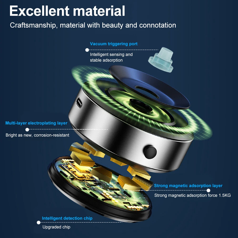 Features: 1. Strong magnetic suction and electric vacuum adsorption double insurance: Adopting advanced magnetic suction technology, it can instantly and firmly adsorb the mobile phone, ensuring that the phone will not fall off during bumps, shakes and even emergency braking. At the same time, the electric vacuum adsorption function further enhances the fixing effect, the two complement each other to provide double solid protection for the mobile phone, so that you can drive without worrying about the mobile phone shifting. 2. Wide compatibility: Whether it's a business mobile phone with a big screen or a small fashionable mobile phone, whether the mobile phone comes with a case or not, this car magnetic mobile phone holder can easily cope with it. Its strong magnetic suction and adsorption ability can be adapted to a variety of different models, sizes and materials of mobile phones, to meet the diverse needs of different users. 3. Convenient installation and use: The installation process is extremely easy, without complicated tools and tedious steps. Simply fix the bracket in a suitable location in the car (such as the centre console) and then gently place the mobile phone to be automatically adsorbed. Moreover, it is also easy to take the mobile phone, one-handed operation can be easily completed, will not distract your attention in the driving process, greatly improving the convenience of use. 4. Protect mobile phone and car interior: The contact area between the holder and the mobile phone is made of special material and design, which will not scratch the surface of the mobile phone. At the same time, in the process of adsorption and disassembly, it will not leave any traces or damage to the interior of the car, effectively protecting your car's interior, so that your driving environment is always neat and beautiful. 5. Stable and durable: The structure of the whole mobile phone holder is designed to be sturdy and stable, able to withstand long-time use and complex road conditions. The magnetic component and electric vacuum adsorption system have gone through strict quality testing and have excellent durability, and are not prone to suction weakening or malfunctioning, providing you with a long-term and reliable use experience. Specification: Name: electric vacuum adsorption mobile phone holder Material: ABS+Zinc Alloy Colour: Black/Silver/POH Size: 6.5*6.5*3cm/2.52*2.52*1.18 inch Battery capacity: 110 mAh Number of magnets: 16PS Suction pressure: 18Kpa-65Kpa Applicable models: 4.7-inch smartphone or above Package List: 1 x Stand 1 x USB charging cable 2 x Dusting cloth 1 x Non-marking sticker 1 x Magnetic attractor sheet Note: Due to different light and screen settings, the colour of the item may be slightly different from the picture. Please allow 1-2cm size difference due to different manual measurement. On Nov 28, 2024 at 01:03:19 PST, seller added the following information:
