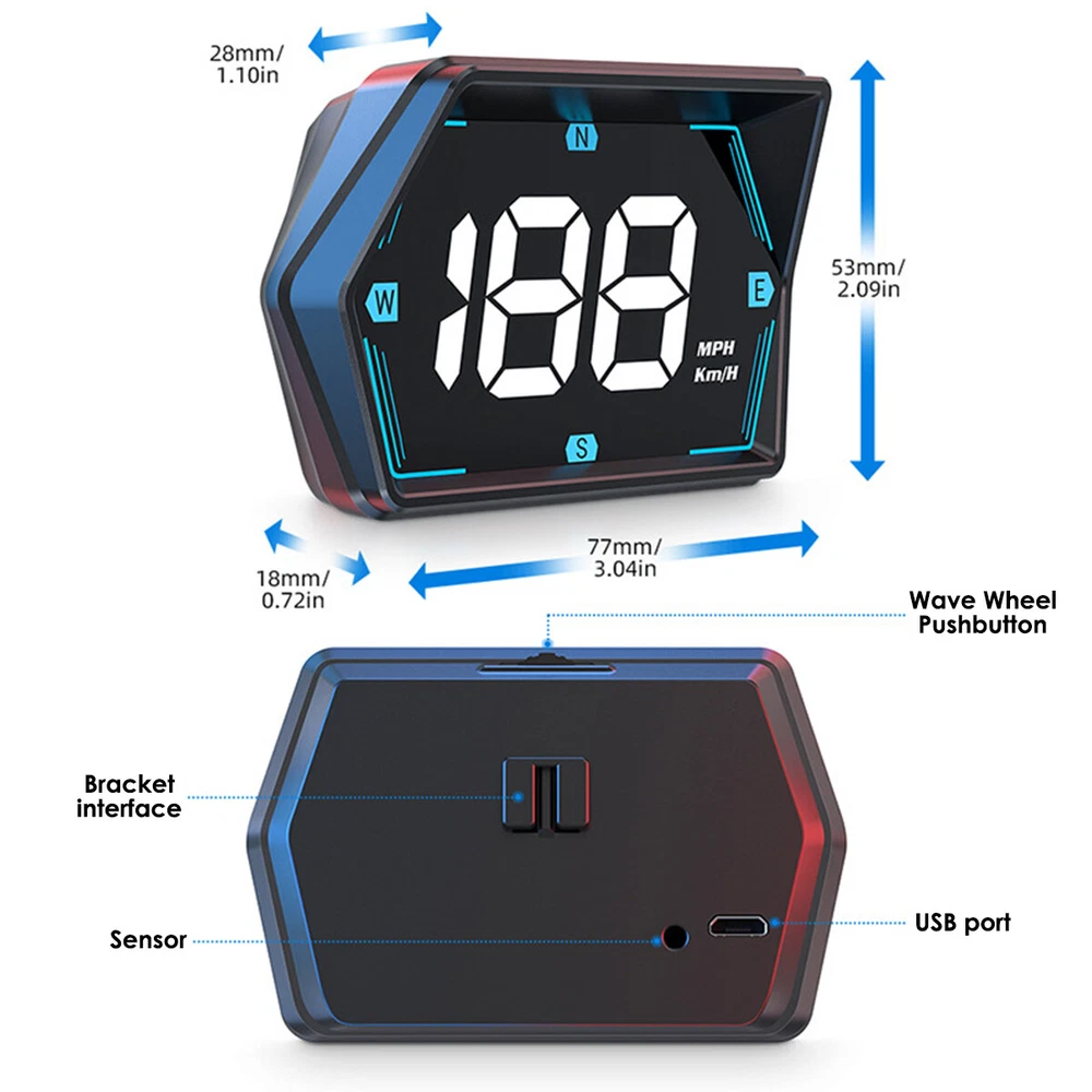 Universal Car Digital Speedometer GPS HUD Head Up Display MPH Overspeed Alarm Features: *GPS Speed Display for All Vehicle Types:This G20 HUD Head-up display is equipped with GPS technology, allowing it to accurately display the speed of any type of vehicle. Whether you're driving a car, truck, or motorcycle, this device can provide real-time speed information. *Compact Size:With dimensions of 77*53*28*18mm, this digital speedometer is designed with a small body that can fit anywhere in your car. Its compact size ensures hassle-free installation and doesn't obstruct your view while driving. *Automatic Speed Notice:The HUD Head-up display is equipped with a preset maximum speed setting. When the vehicle exceeds this speed limit, the device automatically blinks to notice the driver, ensuring safety on the road. *Built-in Light Sensor for Optimal Visibility:This Car HUD Head-up display features a built-in light sensor that detects the brightness of the external environment. It automatically adjusts the display's brightness accordingly, ensuring optimal visibility in different lighting conditions. *Convenient Power Supply:You can power this gadget using your vehicle's USB (5V) or by plugging it into the car socket. This allows the device to automatically turn onoff with the car, providing a hassle-free and secure power supply. *This GPS HUD can be installed by different methods, you can install it on the dash board with Anti-slip tape, or you can intall it on windshield with suction cup bracket. Specification: *Part Name:Car HUD Head-up display *Model:G20 *Material:ABS+PC *Size:About 77*53*28*18mm *Color:Black *Resolution: HD *Input signal: GPS *Speed unit: MPH 、KM/H *High Universality Fitment:Yes *Voltage:USB 5V Package: 1x GPS HUD 1x Suction cup bracket 1x Power supply cable 1x Instruction manual 1x Anti-slip mat