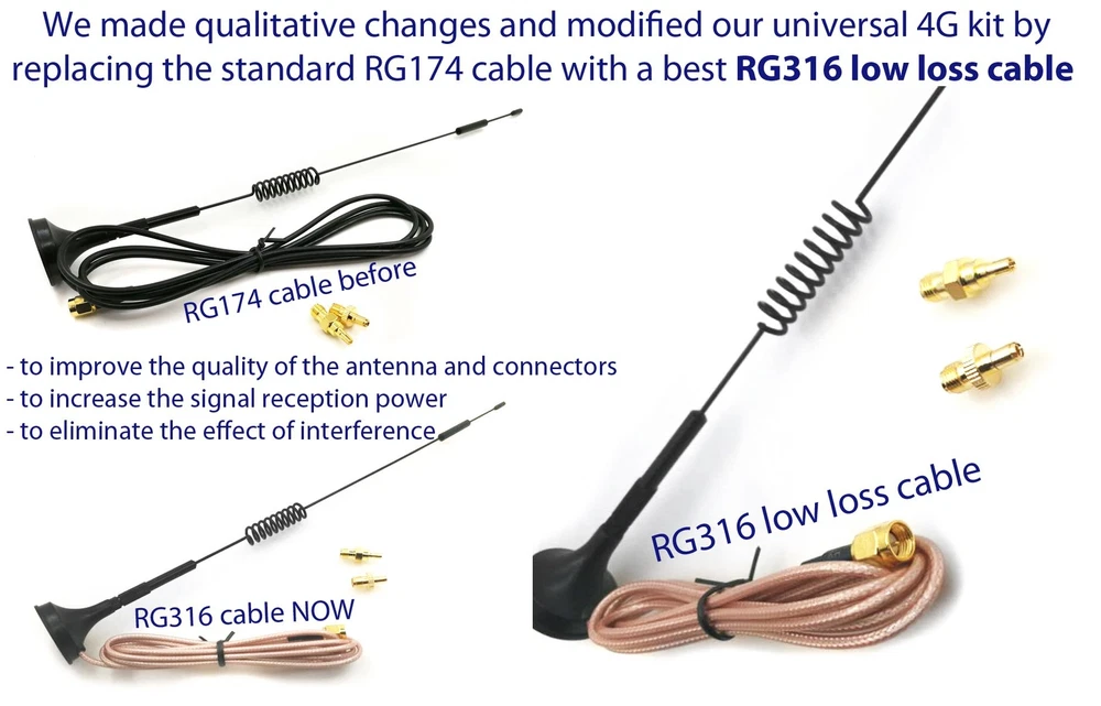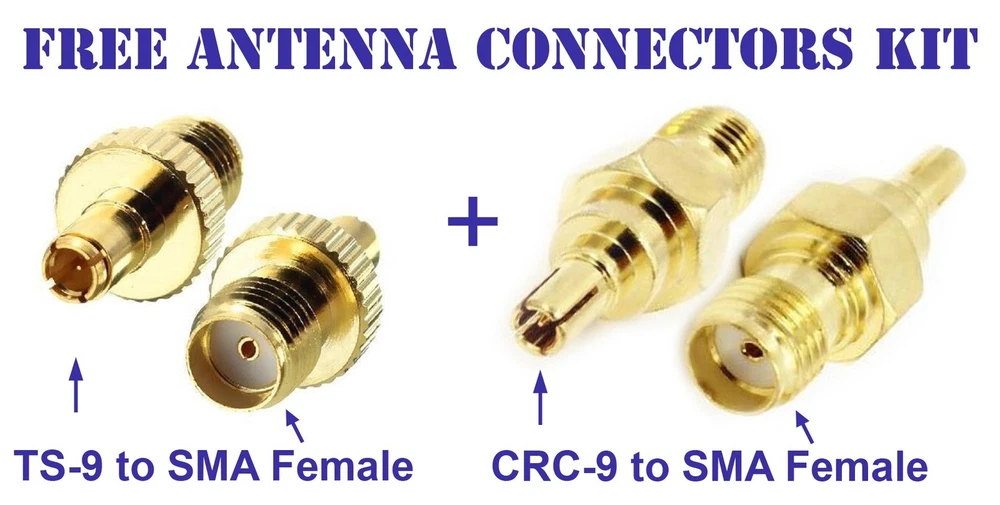 Absolutely universal kit of 4G LTE Antenna Wide Band 7dbi Gain 698-960 / 1710-2700 Mhz GSM Antenna and FREE Special SMA Female to TS-9 and SMA Female to CRC9 Connectors for any Network (Mobile) Cellular Devices. Our LTE Antenna is made for use with 4G LTE modules and devices that require the highest possible efficiency and peak gain to deliver best in class throughput on cellular (4g/LTE) bands worldwide for routers, access points and terminals. The antenna is a ground plane independent antenna with a SMA Male connector on Magnetic base. The Apex exhibits high efficiency across the ultra wide band and is backward compatible with 4G cellular applications. With very high efficiency on cellular band globally it is an ideal solution for any device requiring high, reliable performance. PRODUCT SPECIFICATIONS: - Product name: 4G Magnetic Base GSM Antenna; - Part number: HSA-7027TFM; - Frequency Range: 698-960/1710-2700 Mhz (2G, 3G 4G (LTE)); - Bandwidth: 100 MHz; - Impedance: 50 Ohm; - VSWR: ≤ 1.7; - Gain: 7 dBi; - Polarization: Vertical; - Power Capacity: 50W; - Radiator: Cuprum; - Connector: SMA Male; - Antenna Length (mm): Ø30*300; - Net Weight: 65 g; - Cable type/length: RG316 low loss/59"(1,5m); - Radome Material/Color: Plastic/Black; - Operating temperature: -40°С ~ +60°С. PACKAGE INCLUDES: 4G LTE GSM Antenna 7dbi Gain Wide Band 698-960 / 1710-2700 Mhz on Magnetic Base RG316 Low Loss Cable 59"(1,5m) Length with FREE Special SMA Female to TS-9 and SMA Female to CRC9 Connectors. For any specific network or mobile GSM devices please use SMA Female to TS-9 or SMA Female to CRC9 connectors Package Includes: 4G LTE Antenna Wide Band 7dbi Gain with SMA Male connector on Magnetic Base RG316 Low Loss Cable 59"(1,5m) Length + Free SMA Female to TS-9 and SMA Female to CRC9 Connectors - absolutely universal kit for any network or mobile devices Wide Band Support: LTE 4G; Frequency Range: 698-960 / 1710-2700 MHz Gain (dBi): 7dBi; Wide-Band, High-Gain Cellular LTE 4G Antenna Special designed for use with 4G LTE modules and devices that require the highest possible efficiency and peak gain to deliver BEST in class throughput on cellular band worldwide for access points, terminals and routers The antenna has SMA Male connector (with a PIN inside) that makes it compatible with more network devices. To operate and quick use an antenna with a large number of specialized network components and any of various types of modems (access points, terminals, routers) in the kit includes two free special connectors: SMA Female to TS-9 connector + SMA Female to CRC9 connector