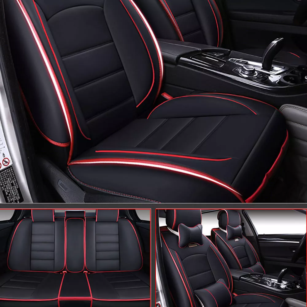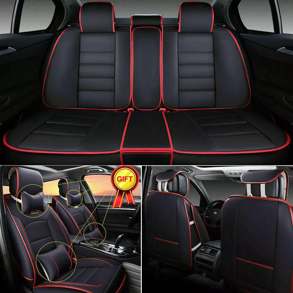 Have a nice day~ Description Universal PU Leather 5-Seats SUV Front & Rear Car Seat Cover Cushion Full Set Dimensions: * Front row: length: 52cm width: 48cm backrest height: 60cm * head cap height: 20cm cap width:26cm * Rear row: length: 120-140cm adjustable width: 45cm backrest height: 60cm * head cap height: 20cm cap width:26cm * Material: PU leather+ sponge + non-woven fabric + silicone anti-skid base cloth * Weight: 5.2kg * Package size: 70*40*60cm * Range of application: 5sits cars, all seasons Features: 1.Facing is comfortable wear proof PU leather and filling is elastic sponge. comfortable and breathable, antibacterial, soft texture, anti-static, no discomfort even a long contact, smooth and delicate. 2.Head design is simple; binding is wearproof; EMB process is stylish and elegant. Matched with neck pillow and lumbar pillow, it can relieve your fatigue. The back is close designed and whole surrounded; it reserves for airbag outlet, beautiful and safe. 3.Large base in front row and whole surrounded design at side of front seat which has no shifting and slide protect the car seat well. Storage bag is designed for front seat which is practical. 4.3 in 1 rear row, reserve for airbag outlet, small head cap in centre, durable and safe 5.PU leather is wearproof, with good hand feel, high flame retardance, easy to clean. Whole surrounded design protects the seat well, easy to install, practical. Package Include: 2 x front seat cushion 2 x backrest seat cushion 2 x waist pillow 2 x Head pillow 1 x central armrest cover 1 x rear central head cover 1x rear seat long bench cover Reminder:Not suitable for the following three types of models: not for Chevrolet Silverado, not for Ford Raptor, not for Dodge Ram Payment Delivery details Terms of sales About us Contact us Payment We accept ebay payment 。 Fees such as import duties, taxes are not included in the item price or shipping costs. These charges are the buyer's responsibility. Delivery details Shipping: 2-9 working days to: USA Terms of sales We maintain high standards of excellence and strive for hundred percent customer satisfaction. Feedback is very important to us. We hope that you contact us immediately before you give neutral or negative feedback, so that we can address your concerns. It is impossible to address issues if we do not know about them! About us Your satis faction is our ultimate goal. We work hard to earn your trust and future business. Our certified technicians have tested each item before shipping. The unit comes with 1 year limited warranty on all manufacturing defects. a) If you receive a defective item, you may return it or ask for a discount. Please contact us within 14 days after you receive the package. b) What you returned must be intact and in its original packaging as re? u. Customer is responsible for shipping costs of the returned item. c) We will cover the cost of shipping back t with the shipping rate indicated in the registration page. We will send you a new unit or refund the full payment you paid. Thank you. Contact us Business Hour Business Hour: Monday To Friday: 8:30 AM to 5:00 PM (Beijing China time) Due to time zones, our reply to your questions may not be immediately. But within above working time, we will reply your email within 24 hours. If it's non-workdays, please kindly be patient and wait till Monday. Please contact us with ebay message. Please feel free to contact us if you have any questions. Monday To Friday: 8:30 AM to 5:00 PM (Beijing China time) Due to time zones, our reply to your questions may not be immediately. But within above working time, we will reply your email within 24 hours. If it's non-workdays, please kindly be patient and wait till Monday. Please contact us with ebay message. Please feel free to contact us if you have any questions.