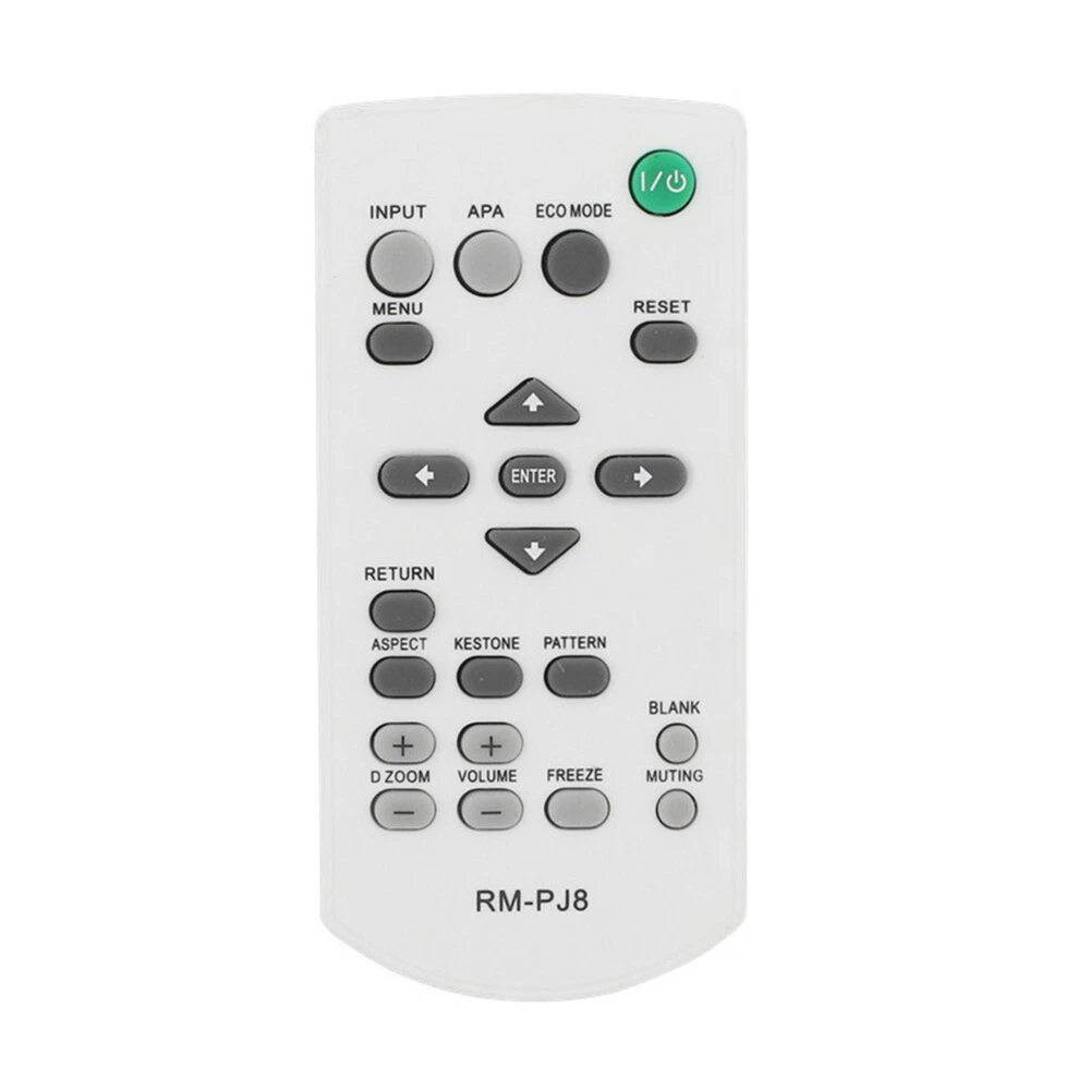 Universal RM-PJ8 Projector Replacement Remote Control for 9373 Model: RM-PJ8 Battery Type: CR2025 Button Battery (NOT Including Battery) Applicable Model: RM-PJ7 RM-PJ6 -CX63 -CX70 -CX71 -CX80 -EX10 -EX120 -EX145 -EX175 -EX121 -EX146 -EX7 -ES1 -ES2 - ES4 RM-PJ5 RM-PJ4 RM-PJ2 - ES3 EX3 ES7 EX50 EW50 EX70 EX100 EX130 ES4 EX4 ES5 EX5 Colour:White Material:plastic Package Contents: 1 x Projector Remote Control
