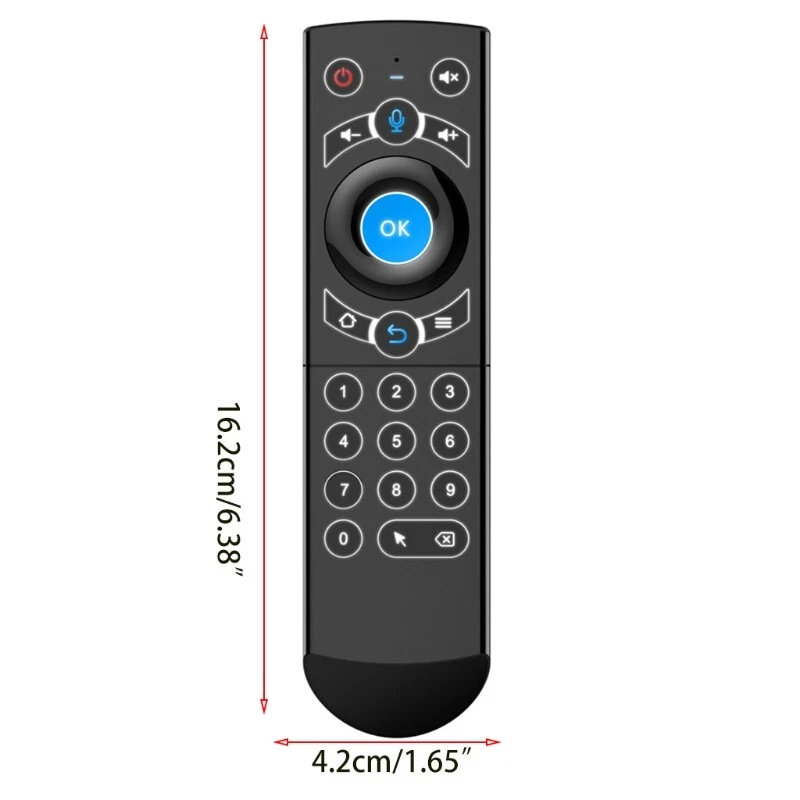 Features: and high Voice search function. All you have to do is ask. Speak into the voice remote control and VONTAR Box searches for what you want. Ask for the best in action movies, today's weather, or the latest celebrity news. With 3-Gyro + 3-Gsensor, it’s more convenient to easy operate in horizontal and vertical Only the Power button can be programmed for learning. For Smart or for Smart Projector users, before purchasing, please make sure that your or Projector can be to a and use normally (can test using a transmission from different angles. Specifications: ABS Size:Approx.16.2x4.2cm/6.38x1.65in Net Weight:70g Package Includes: 1x Remote Control is not included) note: Please allow 1mm errors due to manual measurement. Due to the difference between different monitors, the picture may not reflect the actual color of the item.