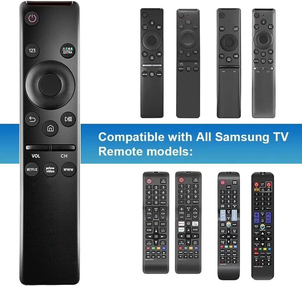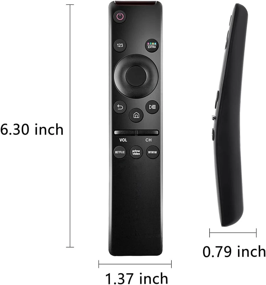 Universal Replacement Remote Control for Samsung-TV-Remote, Compatible for All Samsung Smart TV LCD LED Curved QLED HDTV 3D 4K 8K UHD and More TVs Product Details Package Dimensions: 6.46 x 2.24 x 1.3 inches Item Weight: 1.76 ounces Manufacturer: LOTEKOO Country of Origin: China Brand: LOTEKOO Special Feature: Universal Max Number of Supported Devices: 1 Compatible Devices: Television Connectivity Technology: Infrared Wide Compatibility: Universal Smart TV Remote Control for All Samsung Smart TV Curved QLED Frame LED LCD HDTV QLED SUHD UHD HDTV 3D 4K TVs. Compatible for All Samsung TV Remote Models: BN59-01259E, BN59-01312B/H/G, BN59-01312F, BN59-01312M, BN59-01312A,BN59-01199F, BN59-01259B, BN59-01260A, BN59-01301A, BN59-01315A, AA59-00666A, AA59-00741A, AA59-00786A, AA59-00602, AA59-00581A, AA59-00582A, AA59-00594A, BN59-01178W, AA59-00638A etc NO Setup Reuqired: Doesn’t need to be programmed, just put in 2 AAbatteries(not included) and then it is all good to go. Upgrade & Simple: NEW upgrade thin and lightweight design makes this remote control easy to grip and uneasy to slip. With NETFLX, PrimeVideo and WWW buttons, you can turn to your favourite show faster.[Please NOTE: The remote has no voice function] Universal Remote Replacement Compatible for All Samsung Smart TVs: [NOT a Full List] For Samsung Class Crystal 4K UHD HDR AU8000 Series For Samsung Class Frame Series For Samsung Class QLED Q60A Series For Samsung Class QLED 4K UHD Q70A Series For Samsung Class QLED Q80A Series For Samsung Class Neo QLED 8K QN800A Series For Samsung Class Neo QLED 4K UHD QN85A Series For Samsung Class Neo QLED 8K QN900A Series For Samsung Class Neo QLED 4K UHD QN90A Series UN40K6250AF UN40K6250AFXZA UN40KU630DFXZA UN40KU6300F UN40KU6300FXZA UN43KU6300F UN43KU6300FXZA UN43KU630D UN43KU630DF UN43KU630DFXZA UN49K6250AF UN49K6250FXZA UN49K6250AFXZA UN49KU6500F UN49KU6500FXZA UN49KU650D UN49KU650DF UN49KU650DFXZA UN50KU6300F UN50KU6300FXZA UN50KU630D UN50KU630DFXZA UN55K625DAFXZA UN55K6250AF UN55K6250AFXZA UN55KU6300F UN55KU6300FXZA UN55KU630D UN55KU630DFXZA UN55KU6500F UN55KU6500FXZA UN55KU650D UN55KU650DF UN55KU650DFXZA UN55KU6600F UN55KU6600FXZA UN60KU6300F UN60KU6300FXZA UN60KU630D UN60KU630DF UN60KU630DFXZA UN65KU6300F UN65KU6300FXZA UN65KU630D UN65KU630DF UN65KU630DFXZA UN65KU6500F UN65KU6500FXZA UN65KU6500KXZL UN65KU650D UN65KU650DF UN65KU650DFXZA UN70KU6300F UN70KU6300FXZA, etc QN32LS03AAFXZA, QN43LS03AAFXZA, QN50LS03AAFXZA, QN55LS03AAFXZA, QN65LS03AAFXZA, QN75LS03AAFXZA, QN85LS03AAFXZA, QN75LS03ADFXZA, QN65LS03ADFXZA, QN55LS03ADFXZA, QN50LS03ADFXZA, QN43LS03ADFXZA, QN32LS03ADFXZA, QN32Q60AAFXZA, QN43Q60AAFXZA, QN50Q60AAFXZA, QN55Q60AAFXZA, QN60Q60AAFXZA, QN65Q60AAFXZA, QN70Q60AAFXZA, QN75Q60AAFXZA, QN85Q60AAFXZA, QN55Q70AAFXZA, QN65Q70AAFXZA, QN75Q70AAFXZA, QN85Q70AAFXZA, QN50Q80AAFXZA, QN55Q80AAFXZA, QN65Q80AAFXZA, QN75Q80AAFXZA, QN85Q80AAFXZA, QN85QN800AFXZA, QN75QN800AFXZA, QN65QN800AFXZA, QN55QN85AAFXZA, QN65QN85AAFXZA, QN75QN85AAFXZA, QN85QN85AAFXZA, QN65QN900AFXZA, QN75QN900AFXZA, QN85QN900AFXZA, QN98QN90AAFXZA, etc NO Setup Reuqired: Doesn't need to be programmed, just put in 2 AAbatteries(not included) and then it is all good to go. Please NOTE: The remote has no voice function. Premium AfterSale Service: We provide 2 yearsWarranty.