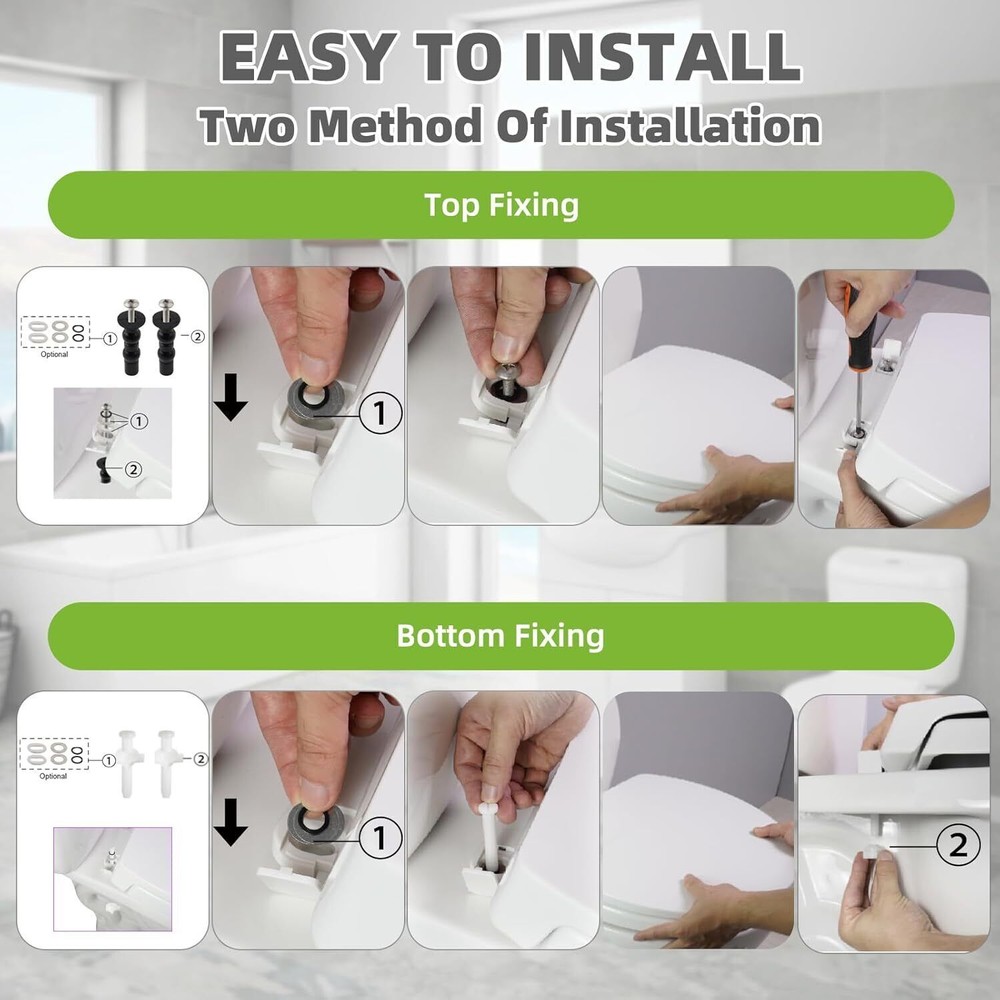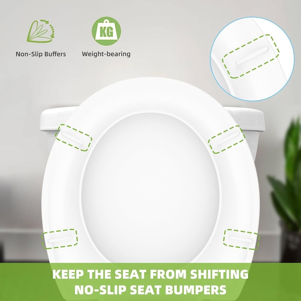 Material Polypropylene (PP) Style Classic Round Shape Round Product Dimensions 18"L x 5"W Operation Mode Manual About this item No Slam Round Toilet Seat: The seat and lid utilize a built-in soft-close hinge system, which lowers the seat and lid down to the bowl gently, protects against bumps, and closes quietly Fits Round Toilet Bowls: This round toilet seat cover is compatible with TOTO/Kohler/Gerber/ Standard toilets, replaceable for most standard elongated toilet seats; Round toilet seat length 16.5 inches; Mounting hole distance 5.5 inches High-Impact Gloss Polypropylene: Constructed with solid polypropylene material and includes rubber pads for better stability, more sanitary, stain resistant; The toilet seat can effectively resist dirt and won't be oxidized or faded in decades Two Types of Screw Accessories: Included all installation hardware: fix it from the bottom with a white plastic screw or from the toilet top with a black insert expansion metal bolt; We also provide two rubber pads to protect the hinge from slipping Humanity Design: No loud slamming toilet seat lid cover closes slowly and quietly without cracked toilets and pinched fingers Material Polypropylene (PP) Style Classic Round Shape Round Product Dimensions 18"L x 5"W