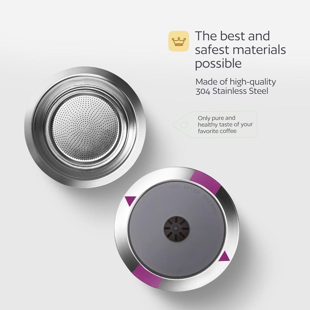 GoodCups Stainless Steel Reusable K-Cups - the perfect companion for your Keurig coffee maker! Our eco-friendly, reusable coffee filter is designed to provide you with the ultimate coffee brewing experience while reducing waste from disposable plastic pods. Made from high-grade 304 stainless steel and BPA-free materials, our durable and safe reusable coffee pod ensures that you'll enjoy fresh, authentic coffee flavor every time. The filtration system, with its numerous perforations, ensures optimal water saturation for enhanced coffee extraction and the rich taste you desire. Our reusable coffee capsule not only saves you money by presenting a cost-effective alternative to disposable coffee pods but also encourages eco-friendly practices. The simple design of the capsule allows for easy filling, insertion, and cleaning, leading to a smooth and hassle-free coffee brewing experience. So, why wait? Make the switch to our Stainless Steel Reusable Coffee Capsule now and savor the ideal combination of flavor, convenience, and environmentally aware living. Raise a cup of exceptional coffee and a greener world! Compatibility: Our reusable K cups work with a variety of Keurig coffee machines, including K-Mini, K-Classic, K-Elite, K-Latte, K-Cafe, K-Select, K-Compact, and both 1.0 and 2.0 models. They are also compatible with Breville and Mr. Coffee K cup machines. (Please see the detailed compatibility list and note that they are not suitable for Keurig K Supreme, K Supreme Plus, or K-Supreme Smart models.) NOT COMPATIBLE with K-Mini Plus, K-Duo Plus, Keurig K-Supreme/Plus/Smart, K-Slim (Multistream), K-Brew+Chill, K-Duo Hot & Iced(Gen 2). Environmentally Conscious: Our stainless steel reusable K cups are made from high-quality, BPA, lead, and DEHP free materials, which help reduce the use of paper filters and plastic coffee capsules. By choosing these eco-friendly K cups, you are contributing to a greener environment. The stainless steel design of our reusable K cups retains the coffee's natural oils and flavors, providing you with a superior tasting coffee experience. These reusable coffee filters are also dishwasher safe, making cleanup a breeze. Ingenious Design: The one-piece construction of our reusable K cups features a tightly sealed top to prevent spills during use, while the 360-degree perforation on the bottom and side walls ensures optimal water flow for full coffee ground saturation and a richer, more flavorful brew.