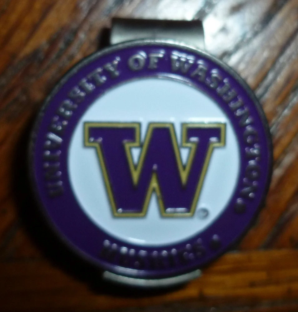 Officially licensed NCAA University of Washington Huskies . One ball marker with either side to be used, pictures show each side. The metal hat clip has a unique groove to stop the ball mark when sliding it back on. Please feel free to contact us if you have any questions and thank you. R&r Golf and Art Store Visit our Store Click on link. FREE SHIPPING SHOWN IS FOR THE CONTINENTAL UNITED STATES ONLY International Buyers there maybe additional charges from customs not included in the shipping charges.