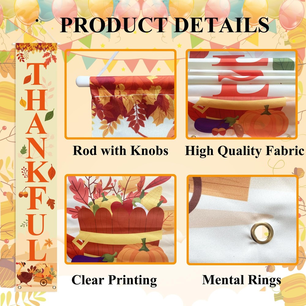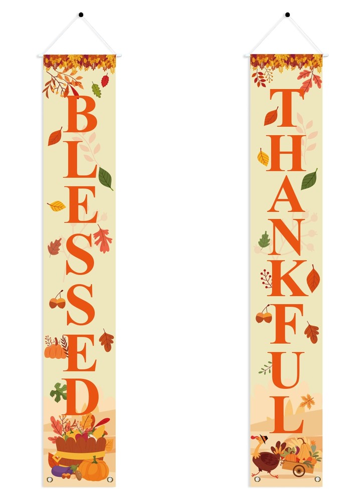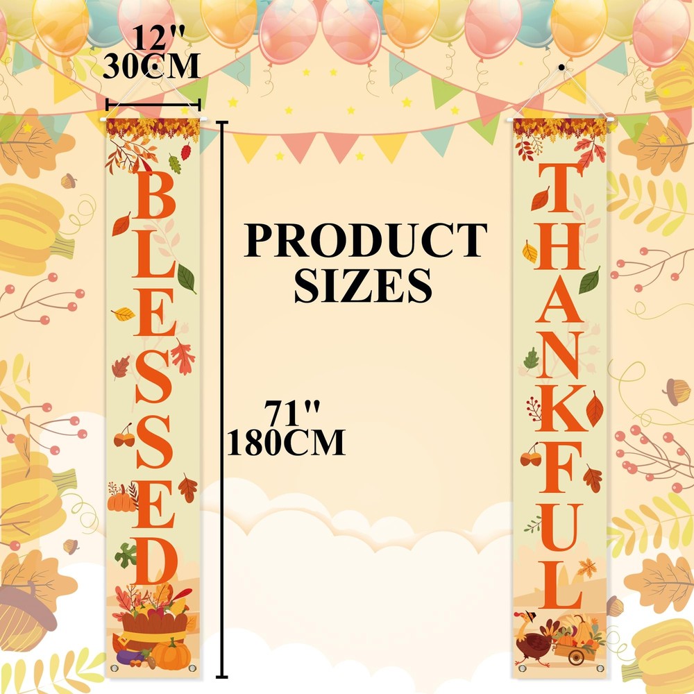 Uniwish Thankful Blessed Porch Banner Thanksgiving Decorations Indoor Outdoor Pumpkin Maple Leaves Welcome Sign for Home Farmhouse Yard Decor Harvest Friendsgiving Party Decorations, 70 x 12 Inch What You Will Get - A pair of Thanksgiving porch sign is included, 1 x Thankful banner, 1 x Blessed banner, orange letters with maple leaf pumpkin and turkey element, unique design for fall Thanksgiving decorations and creates a festive atmosphere Easy to Hang & Storage - 70"x12" Thanksgiving banners, suitable for various doorways, and comes assembled with rod and string for ready to hang, with 2 grommets at the bottom where can be attached some weights to keep them from blowing around Fall Decorations for Home - The happy Thanksgiving banner is made of polyester oxford fabric which is sturdy enough to use many times, non-fading and weather-resistant, huge letters can be seen very clearly from the street, vibrant to catch people's attention Versatile - Festival Thanksgiving decorations, meet your different needs to decorate the front door, porch, garage, patio, indoor or outdoor etc., and make charming decorative statements for any backyard, lawn or garden Application - Welcome guests to your home or fall theme party with this Thanksgiving door banner, use it as a background to take unforgettable photos with your family and friends, complement your Thanksgiving celebration What You Will Get - A pair of Thanksgiving porch sign is included, 1 x Thankful banner, 1 x Blessed banner, orange letters with maple leaf pumpkin and turkey element, unique design for fall Thanksgiving decorations and creates a festive atmosphere Easy to Hang & Storage - 70"x12" Thanksgiving banners, suitable for various doorways, and comes assembled with rod and string for ready to hang, with 2 grommets at the bottom where can be attached some weights to keep them from blowing around Fall Decorations for Home - The happy Thanksgiving banner is made of polyester oxford fabric which is sturdy enough to use many times, non-fading and weather-resistant, huge letters can be seen very clearly from the street, vibrant to catch people's attention Versatile - Festival Thanksgiving decorations, meet your different needs to decorate the front door, porch, garage, patio, indoor or outdoor etc., and make charming decorative statements for any backyard, lawn or garden Application - Welcome guests to your home or fall theme party with this Thanksgiving door banner, use it as a background to take unforgettable photos with your family and friends, complement your Thanksgiving celebration Shipping from the USA All of our products are shipped from the USA, ensuring quick delivery to your destination. Payment We offer the following payment methods: PayPal, credit card, bank transfer, and eBay's secure payment system. Free Shipping & Free Returns Shipping within the USA is FREE. Additionally, any return is absolutely free for you. Risk-Free Purchase You have the option to return an item within 30 days without any justification. We cover the return shipping costs! Fast Shipping We ship immediately upon receipt of payment. Generally, the package is delivered within 2-3 days in the USA. If it takes longer, we will contact you. Quality and Costs Made in Europe, USA, China No customs fees or additional charges Total satisfaction guarantee Invoice with declared VAT available upon request in .pdf format Feedback Your feedback is very important to us. After you pay for your purchase, you will automatically receive positive feedback from us.