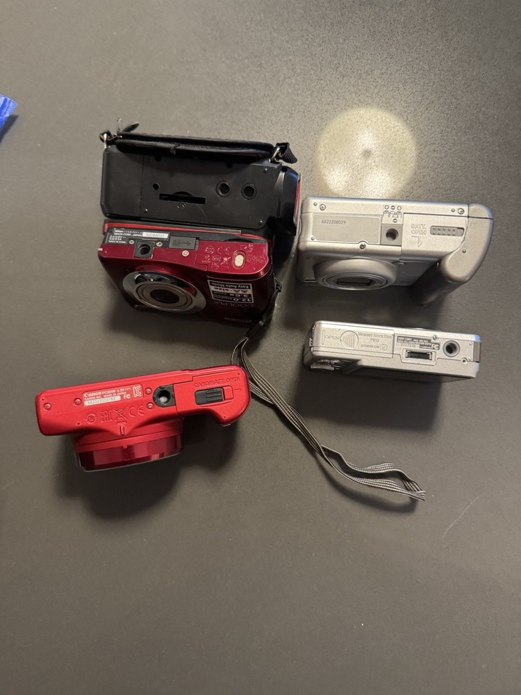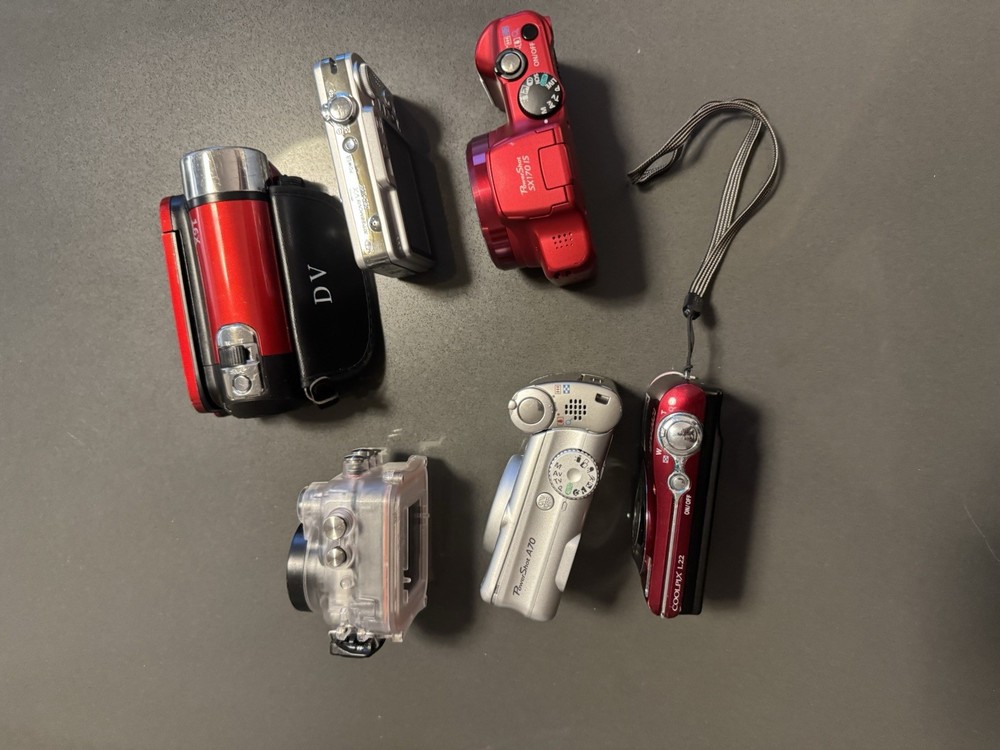 This lot of 6 digital cameras includes models from Sony, Canon, and Nikon, such as the Sony Cyber-shot, Canon Powershot Sx170, and Nikon Coolpix. These compact cameras have digital zoom capabilities, with a 4x zoom for capturing high-quality images. The cameras are in various colors, including red, and offer USB connectivity for easy transfer of photos and videos. While the cameras are untested, they provide a range of features and functions to help users capture memorable moments with ease and convenience. These cameras are UNTESTED. They may work. They may not. They don’t come with batteries or chargers. They are to be sold as is. For parts/ not working