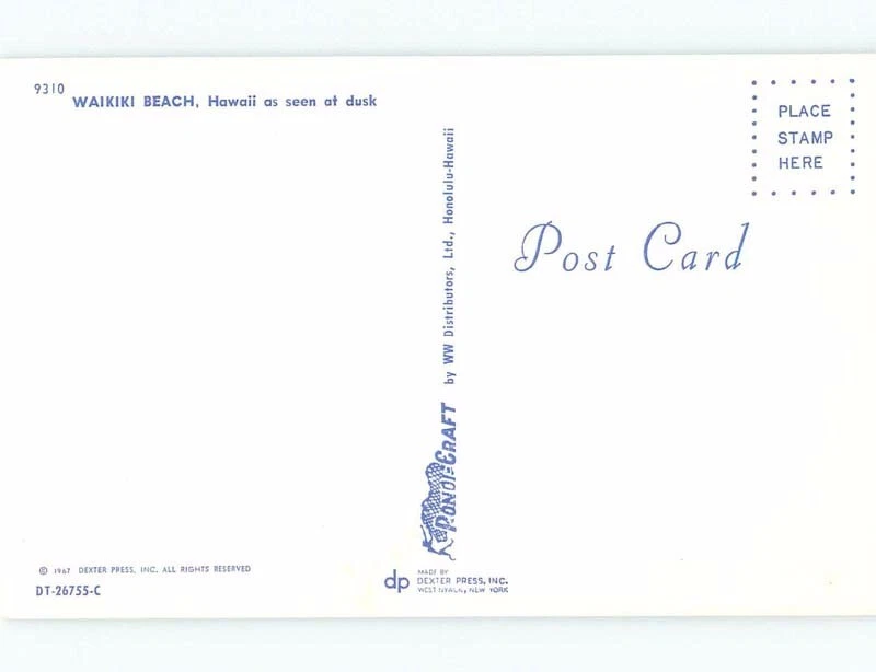 Unused Pre-1980 SUNSET ON PALM TREES AT BEACH Waikiki - Honolulu Hawaii HI d6943