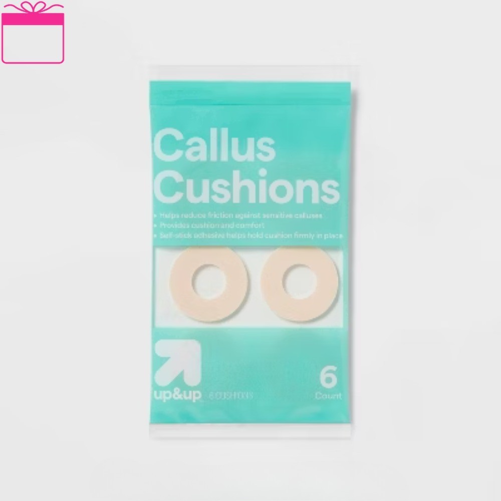 Description Help keep calluses from causing pain and snagging on socks or hose with up&up™ Self-Stick Callus Cushions. This six-count pack of round callus cushions is designed with self-stick adhesive that's easy to apply to calluses to help relieve uncomfortable pressure from shoes. Made of extra-soft, hypoallergenic foam, they also have a convenient hole in the middle so you can place the opening over the callus and avoid the tender area. We believe making smart choices for the people, places, and pets in your life should be easy and affordable. And, having quality you can trust should be a given. That’s why you can count on our promise – caring for your everyday in every way. Satisfaction guaranteed – Love it or your money back. highlights Packaging may vary. Same trusted quality Self-stick round callus cushions help relieve discomfort from calluses Made of extra-soft foam to provide cushion from shoe pressure Held firmly in place with self-stick adhesive Helps keep calluses from snagging hosiery