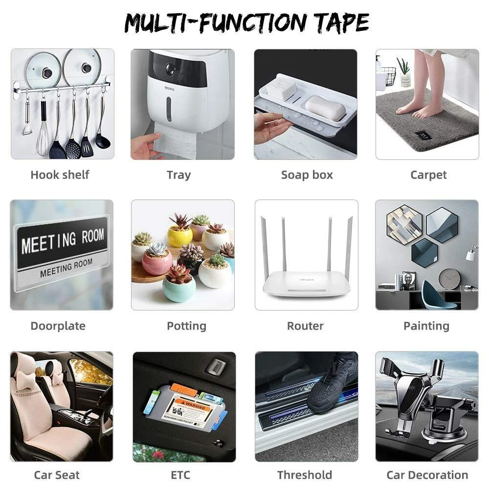 Double-Sided Nano Adhesive Tapes Features: 1. Made of high quality nano-pu gel material,length 5M/16.4FT, width 30mm, thickness 1mm. Sturdy and durable, double-sided adhesives, environmentally friendly, heat resistant(-16C (0F) or above 62C (150F),transparent, washable, reusable, easy to remove, leave no traces on the wall or any surface. 2. It is easy to mount hooks, signs, numbers, pictures, car number plates etc. 3. Provides a quick and easy solution to mount and repair where traditional fasteners can't. 4. Alternative to nails, screws & glues. 5. Ideal for use on finished/painted surfaces, metal, plastic, vinyl etc. Suitable for exhibitions, home, office, kitchen, etc 6. Compare to super glue, our double-sided nano adhesive tape could offer you an option of taking it down at some point, so you may rearrange them at a later date. Useful Information: 1. Please clean the surface first before applying. Remove any residue or oil, These tapes work perfectly on most flat surface, such as dashboard(for toys), windshield, painted wood, metal surfaces, some textured tiles, etc. 2. DO NOT USE on drywalls & the surfaces that have a waxed layer, Adhesive pads can definitely rip paint! 3.When it gets dirty, you can wash it with water. DO NOT use any other wipes or detergent. You just need to wash and dry it to restore the sticky then reuse again Specification: Material: nano-pu gel Color: Clear Length: 5m Width: 30mm Thickness:1mm Package includes: 5m Double sided adhesive tape * 1pcs [Latest Upgrade Nano Double Sided Tape] This adhesive tape using the most advanced nano technology, Unique formula adhesive make this tape same stronger as the new even several use after wash. heat-resistant, longer lasting and more durable. Stronger Grip [Wide application and Versatile] double sided tapes is designed for tough applications, .It is easy to cut to any size and length you want. will join or mount paper,Carpet, card, wood, ceramics, Plastics,Glasses,Metals, car number plates and most plastics,This tape will be very useful for various household purposes. [Finding new uses daily]Industrial double sided nano tapes delivering an instant and weatherproof bond,It can be stretched, bending and folded out of shape for your various needs. These sticky tapes will last you a long time and provide many solutions, and you can forever finding new uses for it. A useful item to have in your tool box,. [Easy to Use]It is Easy-to-apply design with no mess or tools, No need for nails, screws, or glue with these Removable, washable and reusable double sided self nano adhesive tapes. length 3M/9.84FT, width 30mm, thickness 1mm. that are ideal for mounting and displays.It's compatible with a variety of clean flat surfaces and conforms easily. Super easy to peel off from the wall,will not damage your walls or surfaces and leave no residue. 【Product Features】Transparent: ✔️. UV-resistant: ✔️. Age-resistant: ✔️. Reusable:✔️. Residue-free: ✔️. Removable:✔️. Waterproof: ✔️. Oil- and grease-resistant