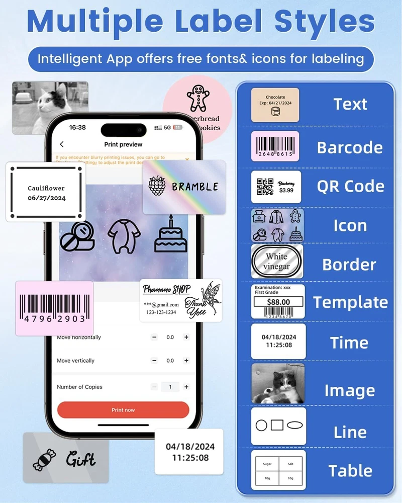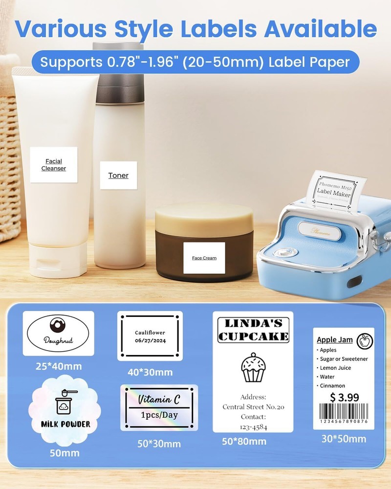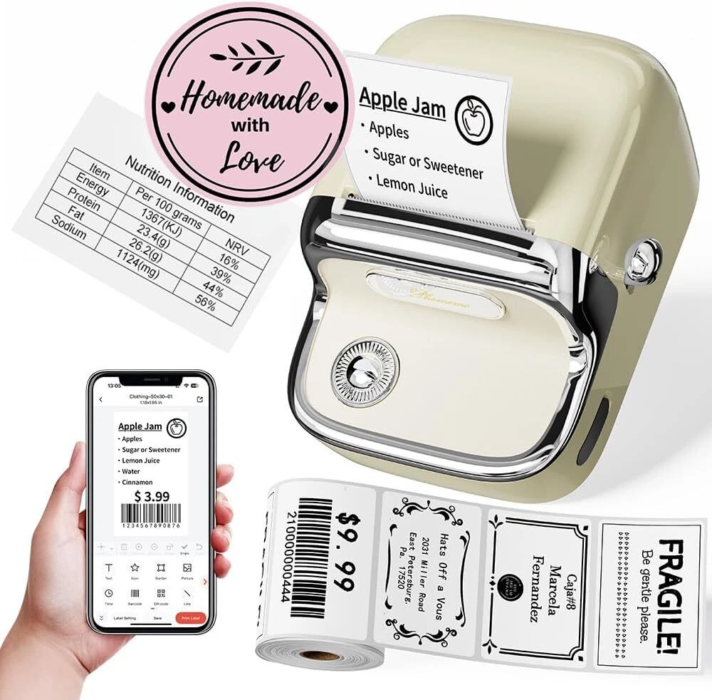 Product Description About this item Phomemo 2025 New Upgraded Label Printer: The combination of sophisticated aesthetics and high-end quality, using electroplating and imitation leather pattern and other exquisite technology, to create the Phomemo M150 mini label maker. The one-piece paper loading structure makes it easy to place labels, saying goodbye to labels loading troubles Large Printing Width: Phomemo M150 Bluetooth sticker printer can print thermal labels with a width of 0.78"-1.96" (20-50mm). Phomemo M150 barcode label printer can use white, color, and transparent labels. You can use the functions of Text, Images, Excel, QR Code, and Barcode in the Print Master App to freely create food labels, ingredient labels, clothing labels, address labels, etc Strong Compatibility: Phomemo M150 wireless address label maker is compatible with smartphones, tablets (iOS and Android systems), and computers (Windows, macOS, Linux). To use it with a smartphone or tablet, download the “Print Master” App from Google Play or App Store, then print by connecting via Bluetooth. For use with a computer, visit the official website to download drivers and the “Labelife” app, then connect and print using a USB data cable Large-Capacity Battery: Phomemo M150 portable barcode printer can print 4200 thermal labels on a single charge, with a printing speed of up to 30-50mm per second. Phomemo M150 label maker also features an NTC temperature sensor to prolong the battery life and ensure printing quality. Additionally, M150 label maker machine has added a feature that automatically rewinds the first label, ensuring that each label is fully utilized and avoiding waste Multi-Functional APP: “Print Master” App offers powerful features such as barcode, QR code generation, text input, image capture, voice recognition, PDF and Excel printing, and batch printing. Additionally, it provides extensive options for label customization with over 100 fonts, 300 templates, and 1000 symbols available for free. Unleash your imagination and creativity to create various labels for food items, handbooks, cosmetics, documents, and more Small Label Maker: Phomemo M150 Label Maker is a 2-inch handheld label printer. The product dimensions are 4.96 x 3.46 x 2.56 inches. M150 label printer cannot print thermal labels wider than 1.96 inches. Previous page Next page
