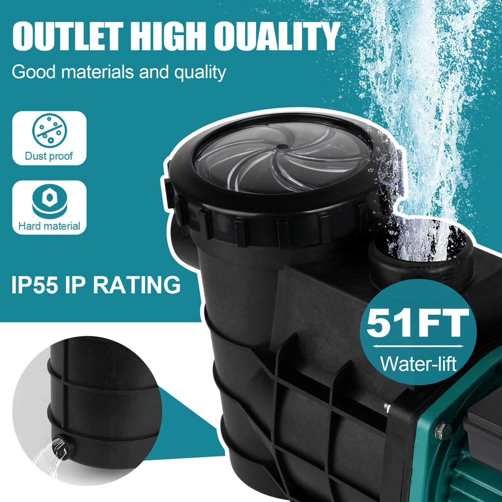 This pool pump is a game-changer! Super quiet yet powerful, it keeps my pool crystal clear with no hassle. The heavy-duty, corrosion-proof build ensures it lasts, and the stainless steel shaft adds extra durability. Super efficient and surprisingly low noise—perfect for both in-ground and above-ground pools. Highly recommend for anyone needing reliable, high-performance pumping!
