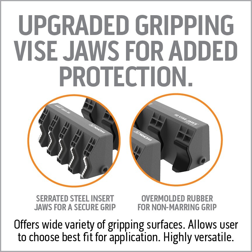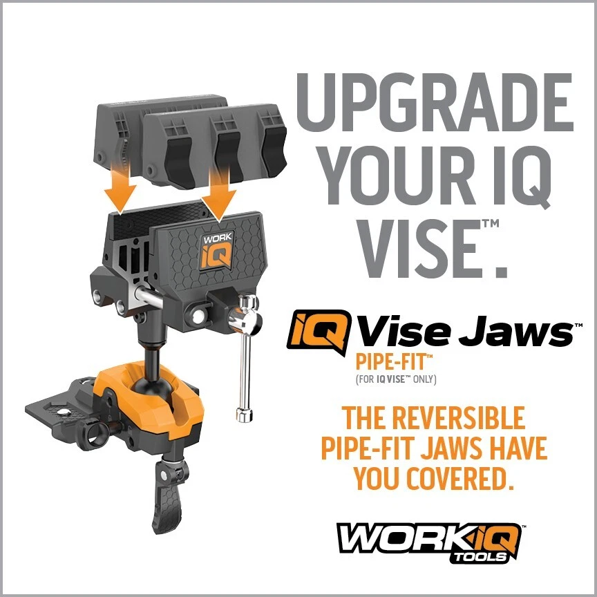 ✔ SECURE GRIP: One side of the jaws features serrated steel inserts, securing tough materials such as cast-iron and PVC pipes. This robust gripping ability is a testament to the meticulous engineering that goes into every Work IQ produc ✔ NON-MARRING RUBBER: On the flip side, our jaws feature a V-shaped overmolded rubber surface ideal for working with delicate materials like copper tubing or bicycle frames that require gentle touch ✔ WORKBENCH ENHANCEMENT: The Pipe-Fit Jaws are not just an addition to your toolkit; they are a pivotal element in transforming how you approach pipe and tubing work ✔ INSTANT UPGRADE: The IQ Vise Pipe-Fit jaws provide easy integration with the IQ Vise system elevating the functionality of your bench vise & transforming your workbench into a more productive space ✔ ADDED FUNCTIONALITY: These bench vise jaw pads are purpose-build and double sided, providing added functionality and capability to your IQ Vise and workshop