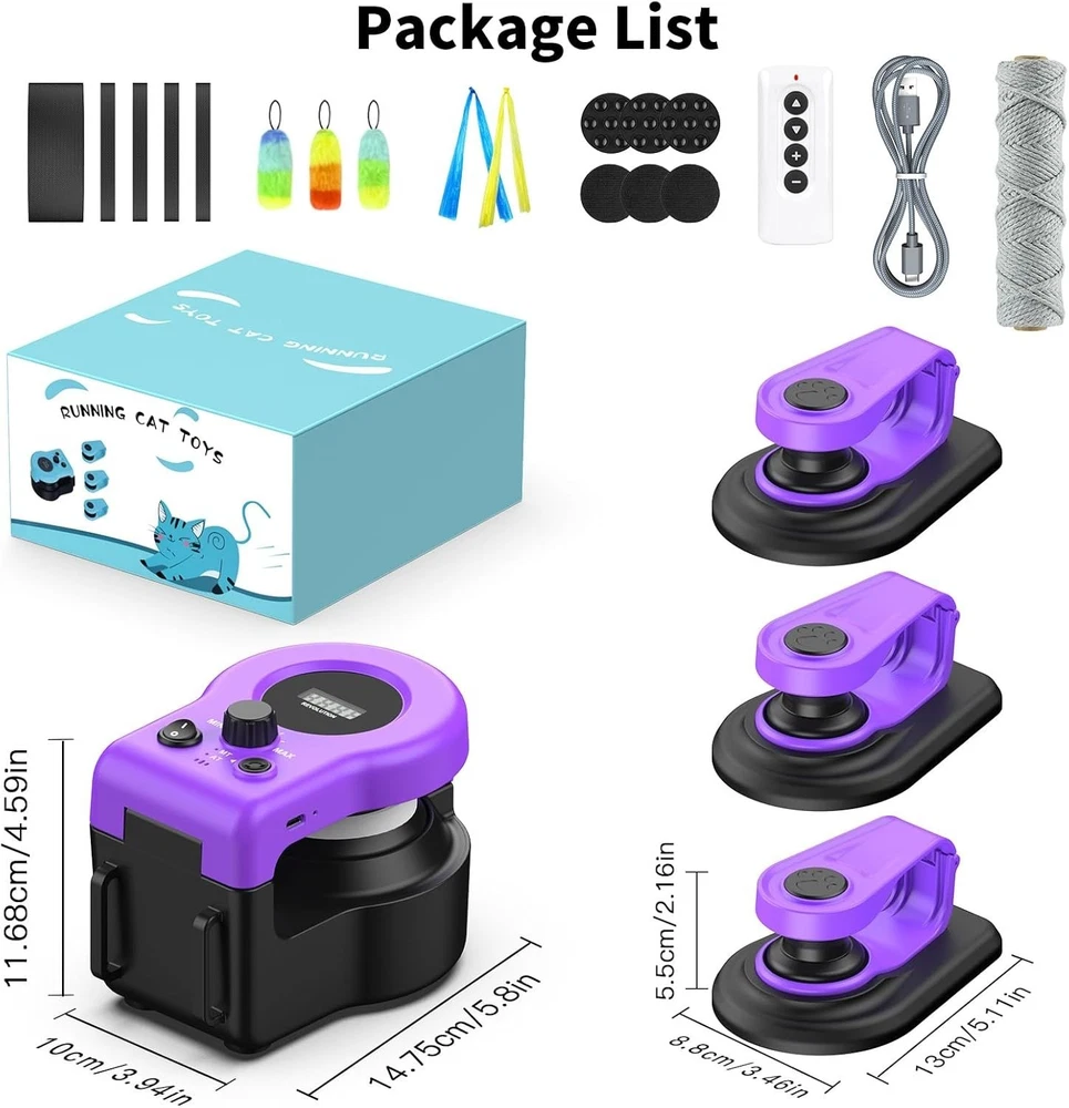 Upgraded Interactive Cat Toy for Indoor Cats, Auto/Manual Control DIY Cat Feather Mouse Toy Treadmill for Bored Kitten Puppy Play Chase Run Exercise Hunting-Elegant Purple 2control mode&Mice sound: cat toy has Auto/Manual Mode, you can adjust the speed(1500-3000 rpm)to give different breeds of adult cats/kittens to chase and play. Choose clockwise/counterclockwise chase by the remote controller to create friendly interactions with your cat. The simulated mouse animal sound further triggers the cat's instinct to chase mice, making your pet have a great time playing. It's one of the best cat stuff for your lovely cats. DIY Multi Play Way: This upgraded interactive cat chase toy is equipped with 3 fixed wire clips so that owners can freely set a variety of running trajectories to stimulate the cat to chase play and help keep your indoor cat physically and mentally active! Support DIY like tying other soft feather s to explore more fresh experiences between you and your feline friends. Satisfy Cat's Hunt Instinct: Cats are crazy about chaser games! Combine string and plush feather toys into a great cat toy for indoor cats, it's an irresistible lure for cats! Moving cat toys with mice sounds will excite your cats and trigger their natural "hunt instinct", making them run and jump like wild animals, driving them crazy with joy! Playing with this cat puzzle toy, cats can consume a lot of excess energy and calories, preventing excessive obesity and maintaining their health. Free Your Hands:This electronic smart cat toy has built-in safety protection mode, running for 15 mins, then sleeping for 2h, and shuts down after 5 times to prevent pets from being overworked or injured when playing excessively; so your pet cat can play itself and no longer be lonely and bored when the owner goes out. Hands-off ways to keep your indoor cat entertained. Boredom busters for cats! Safe&Healthy: Designed with safety and self-entertainment in mind is healthy for your cats. And it has been tested many times, you don't have to worry about this toy hurting your pets. The main body of the cat toy is made of safe and healthy ABS material, giving it a smooth surface and no sharp edges. And the plush and string accessories come with no sharp parts or edges, no harm to cats. It ensures the toy's safety and durability. The best cat toys for bored cats! This product is covered by one or more of Pat. No. 10,609,904, 11,297,801, and 12,156,508. These patents are owned by SwiftPaws, Inc. This product is produced under license from Swift Paws, Inc.
