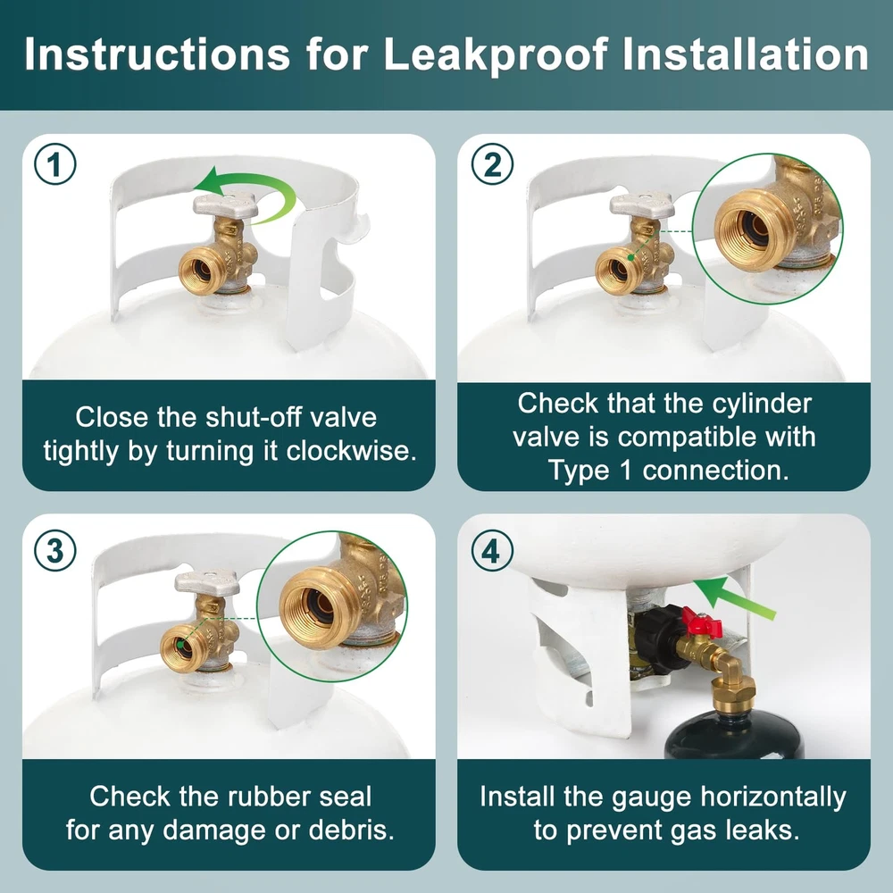Easy Filling: The 90-degree elbow design makes it easier for gas to flow to the small cylinders. Simply attach to your large tank and your 16 oz tanks for refilling in 1 minute Upgraded Design: Featured with a propane ON-Off control valve, prevents gas leaks when connecting gas cylinders. You can easily control the refilling process with safe Safe Structure: Corrosion-resistant solid brass provides a better sealing effect. Additionally, the built-in safety features effectively prevent the danger of overfilling the gas cylinder Standard Fitting: QCC-1 x 1"-20 Female Throwaway Cylinder Thread, ensure the propane bottle adapter fits your propane tanks Use with Ease: Easily refills your 1 pound bottles multiple times without tools. Helping you save on the cost of buying new green propane gas cylinders