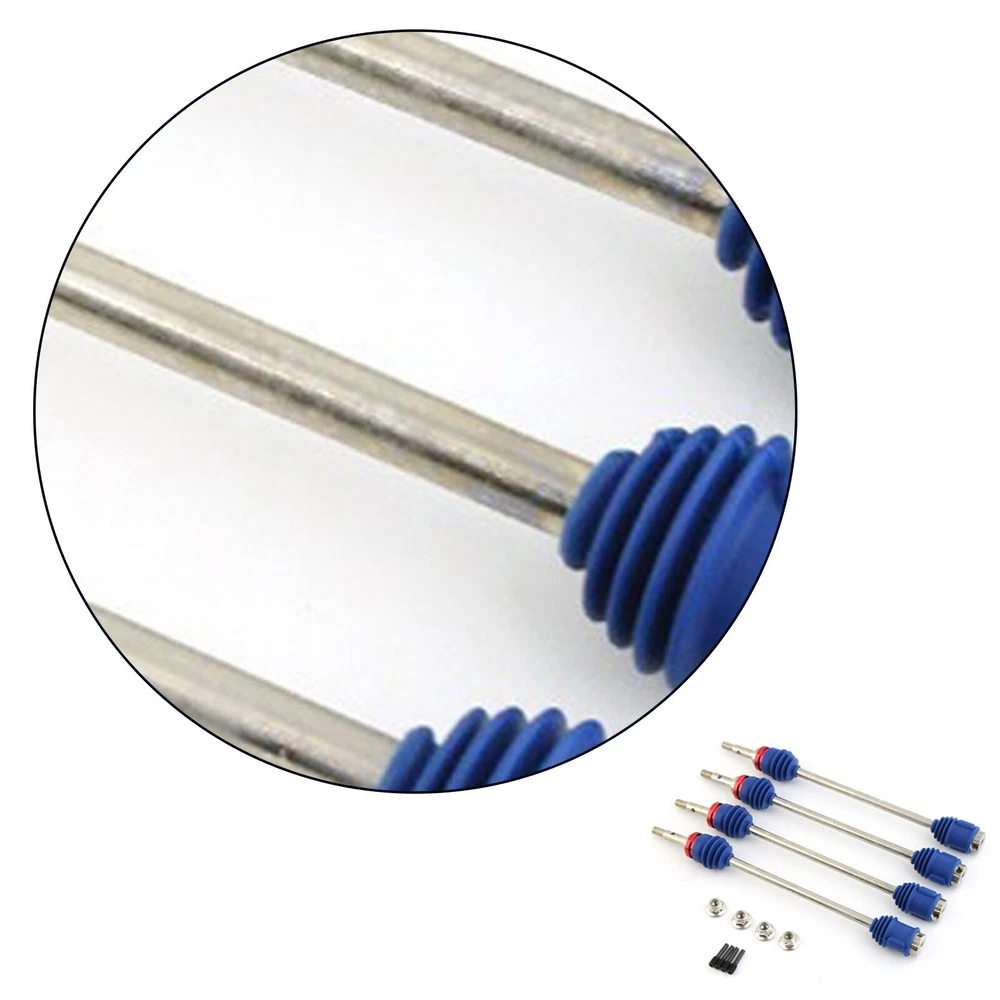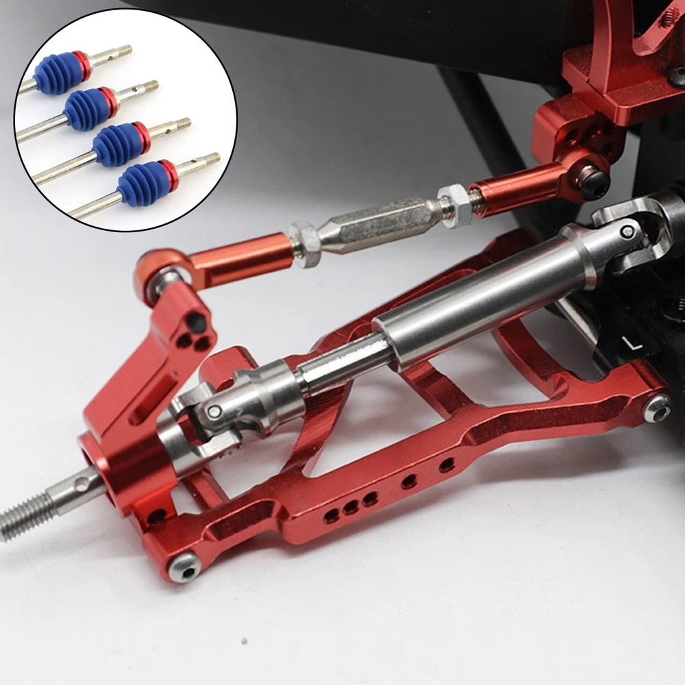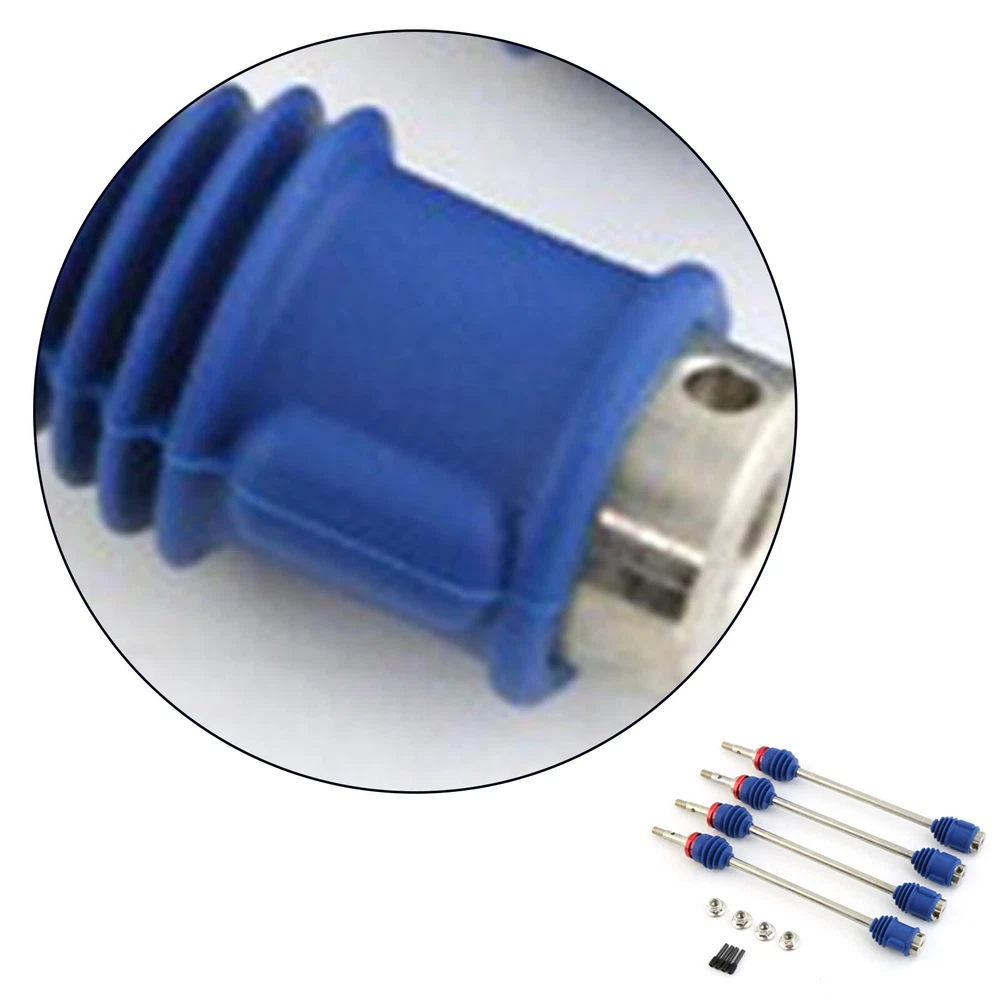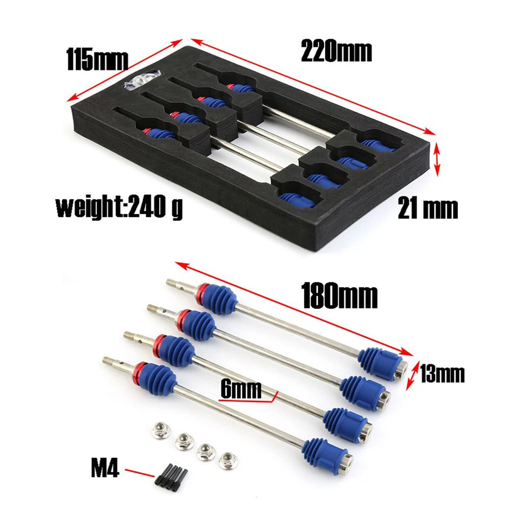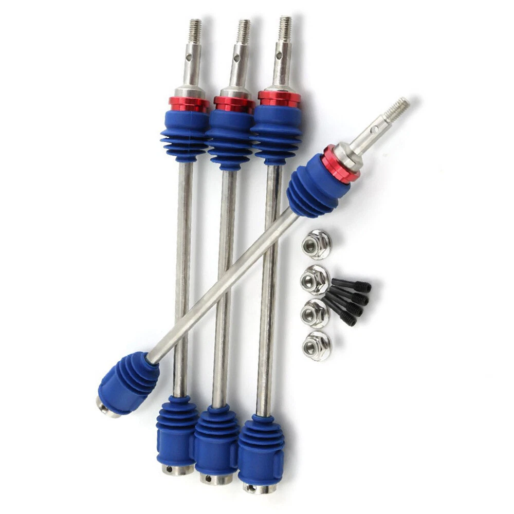 Features: 100% brand new Traxxas Steel Constant Velocity Driveshafts are designed to handle the extreme horsepower and articulation that a T-Maxx or Revo can dish-out. The inner and outer U-joints are lubricated and sealed by a rubber boot for maximum protection against the elements, and the U-joint pins are held captive by a lightweight aluminum sleeve so you never have to worry about losing a pin. steel construction Can be used to replace a bent or damaged front center driveshaft Assembled with inner & outer dust boots Suitable for: T-Maxx 3.3, Nitro Revo (all versions), E-Maxx brushless, E-Maxx (2nd generation), E-Revo brushless, E-Revo. Not suitable for: T-Maxx Classic, E-Maxx (1st Gen), Summit, E-Revo VXL Brushless, MAXX. Specifications: Material:steel total length: 180mm/7.09inch Diameter: .6mm/0.24inch Package lists: 4 x steel constant-velocity driveshafts Note: Not for use with long-travel rocker arms Please note: This product is not a brand original, it is a universal upgrade accessory