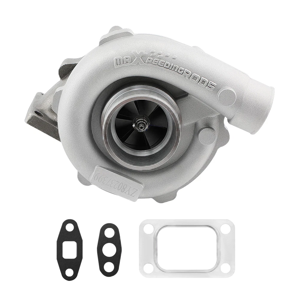 Introductions: A turbocharger, colloquially known as a turbo, is a turbine-driven, forced induction device that increases an internal combustion engine's efficiency and power output by forcing extra compressed air into the combustion chamber. Notice: Please confirm that your car's displacement is between 1.5-2.5L . Please check the size before purchasing and make sure that your car has enough space to install this turbo. Fit for: for 1.5L to 2.5L any 4/6 cylinder engine Boost pressures are7psi(.5 Bar) to 21psi(1.5 Bar) Specification: Exhaust (Turbo Manifold) Flange:T3 T4 4 bolt Flange Patterns Exhaust Flange:Standard T3 5 bolt flange pattern Cooling Type:Oil Cooling Bearing Type:Journal Bearing/Floating Bearing Thrust Bearing:270 degrees Horse Power:Up to 400 Wastegate:External Wastegate Actuator Type:W/O Actuator Turbo Type:Individual Universal Fitment:Yes Finish:Matte Condition Brand New Accessories:You will get exactly as shown as picture Package Size:27x 25x 24 cm Package Weight:7250g Compressor: Trim: 44 A/R: 0.5 Inducer: 50.5 Exducer: 76 Turbine: Trim: 73 A/R: 0.63 Inducer: 65.5 Exducer: 55.9 Package included: 1x Turbocharger 1x Flange Gasket 2x Oil Port Gaskets Features: *Product Material 1. Turbine housing: Ductile iron QT450-10 - temperature resistant up to 700℃ 2. Steel turbine wheel: K418 alloy - high oxidation stability and resistance up to 900℃ 3. Compressor housing: ZL104 aluminum with lightweight 4. Compressor wheel/blades: Cast aluminium blades – superior air tightness corrosion resistance *Product Performance 1. Cost-effective turbo increase 20-40% power for your car 2. Rich experience in turbo production and own factory 3. High oil seal and clearance 4. Built for durability and strength * Technology Advantage: 1. balancing Test by TURBOTECHNICS VSR3 2. G3-min-Flow VNT Turbo testing 3. Advanced Actuator Tester/Programmer NOTE: * Does NOT have a internal wastegate so you must have a external wastegate on your manifold. * Replace, repair or reconnect air cleaner element per manufacturer's manual to avoid compressor wheel damage. * Make sure the oil drain line is lower than the turbo itself. * Ensure exhaust outlet are well sealed by welding * The degree of modification of the universal turbo depends on your individual vehicle. * Professional installation is highly recommended. * This Turbo is not vehicle specific. Please check the specifications and verify compatibility prior to placing your order. * Before installing the new turbocharger, the cause that to the failure of the turbo must be analyzed and eliminated (e.g. insufficient oil supply, foreign bodies in the intake area, crankcase ventilation without function, etc.)! Notice: California Prop 65 Warning Code:MXR02FXSY