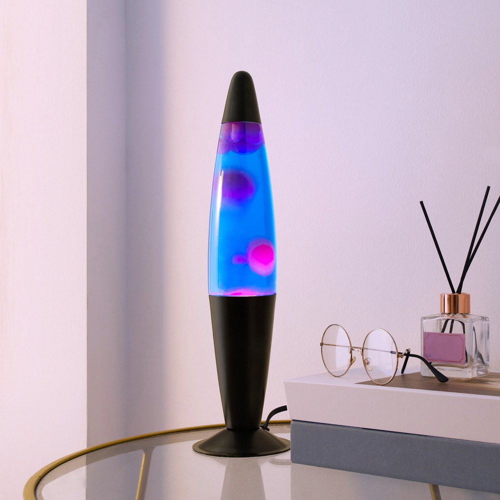 Create an upbeat atmosphere anytime with the new Urban Shop 16" Galaxy LED Motion Lamp. With its warm light and welcoming glow, this Urban Shop Galaxy Motion Lamp is sure to put anyone in a cheerful mood. Use the Urban Shop Motion Lamp in your bedroom, kids’ room, living room, or even your home office for some extra fun lighting. The Urban Shop Motion Lamp is easy to use with an ON/Off switch and plugs in easily. Place this fun Motion Lamp on your nightstand, desk, or table and watch as it softly heats up and creates a swirling motion display. Warm up time for the wax and liquid is between 1-2 hours. The calming motion of the Urban Shop Motion Lamp’s swirling lights is sure to set the tone. Urban Shop 16" Galaxy Motion Volcano Lamp, Purple Wax in Blue Liquid, Black Metal Base Part of our collaboration with the Urban Shop Novelty Lighting Collection Measures: 16" H x 4.2 W x 4.2" D Includes a plug in power adaptor for easy use to plug into the wall Comes with an On/Off switch Wipe clean for easy care and maintenance Recommended warm up time is 1.5 hours The Urban Shop Motion Volcano Lamp is also available in Blue, Rainbow, Pink/Purple, Rose Gold, Yellow/Blue, and Pink/Orange Ombre Sunset Place on your nightstand, table, or desk Perfect for any room in your home Uses LED bulb